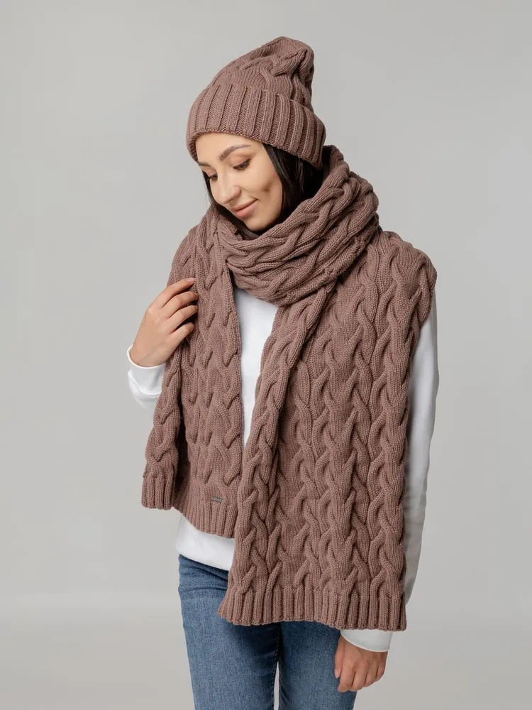 Мягкая удлиненная женская шапка объемной вязки Loren — уютный вариант для создания современного городского образа.