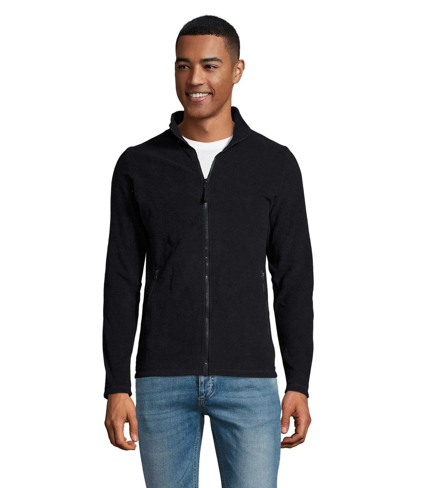 Однотонная мужская куртка из флиса Norman Men. Воротник-стойка на молнии, 2 кармана на молниях. Кроеный трикотаж, флис 220 г/м².