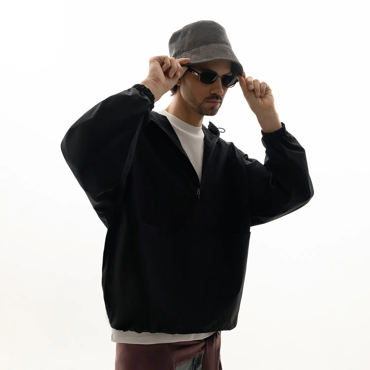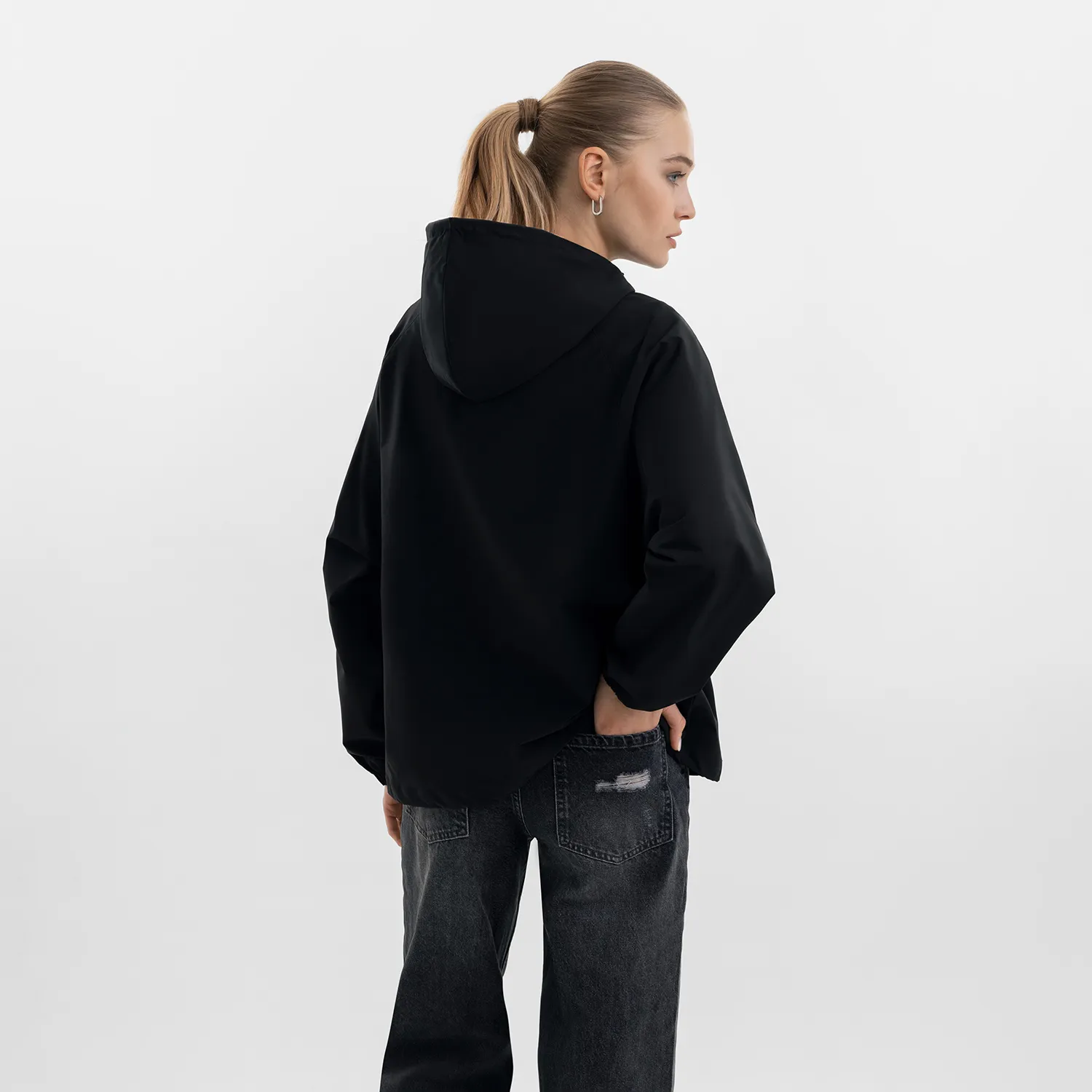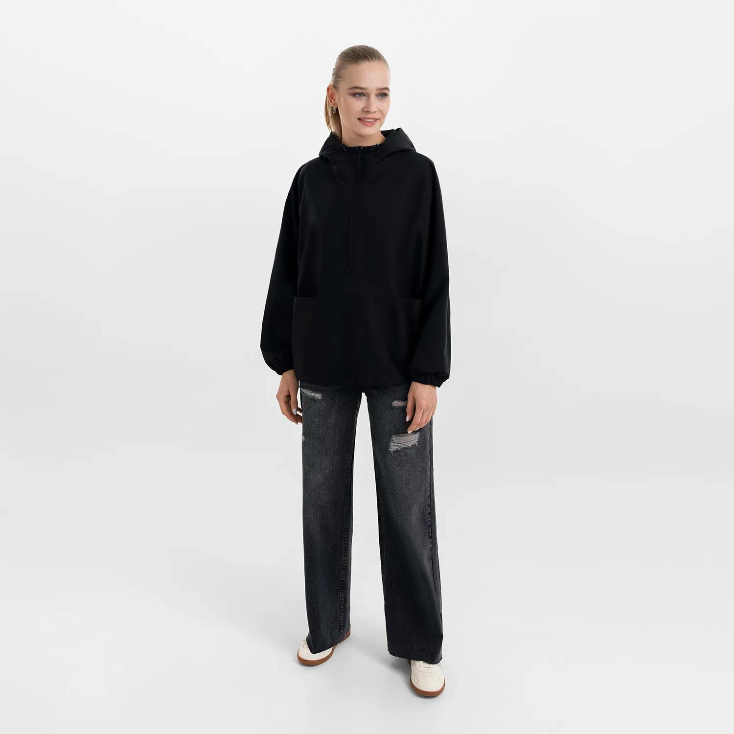 Ветровка (анорак) оверсайз унисекс RISSMAN, черная, размер XL/XXL