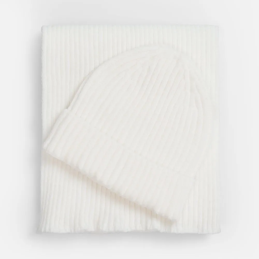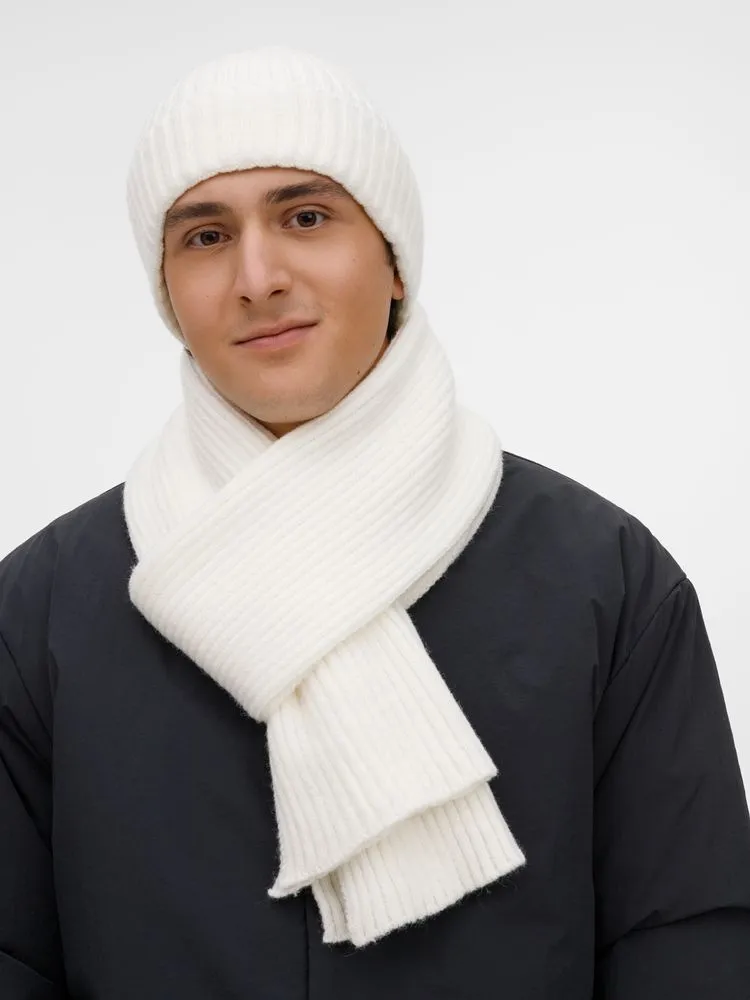 Шапку можно носить двумя способами: плотно прилегающей к голове или слегка приподнятой на макушке для создания современного силуэта. Шарф оптимальной длины и ширины позволяет экспериментировать с вариантами драпировки. Набор станет идеальным спутником для городских прогулок и поможет создать элегантный образ без лишних деталей.