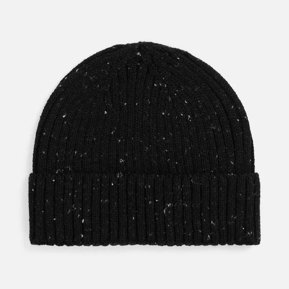 Шапка с отворотом, связанная объемной резинкой из мягкой акриловой пряжи, создает стильный силуэт и надежно защищает от холода. Особую индивидуальность ей придают контрастные вкрапления в пряже — деталь, которая делает каждое изделие уникальным.