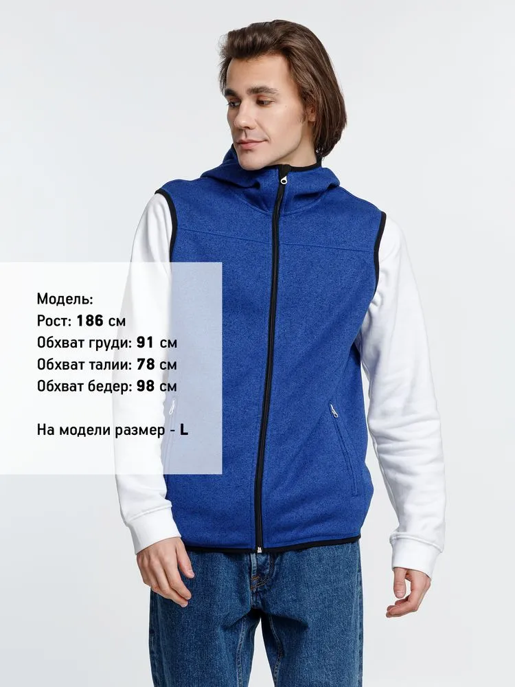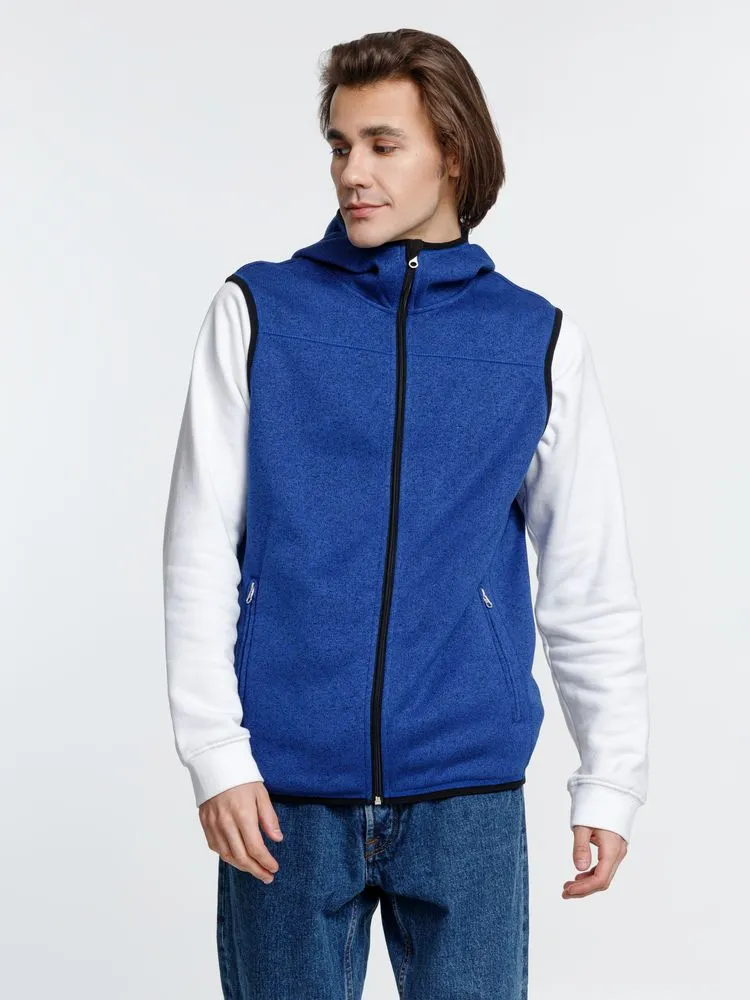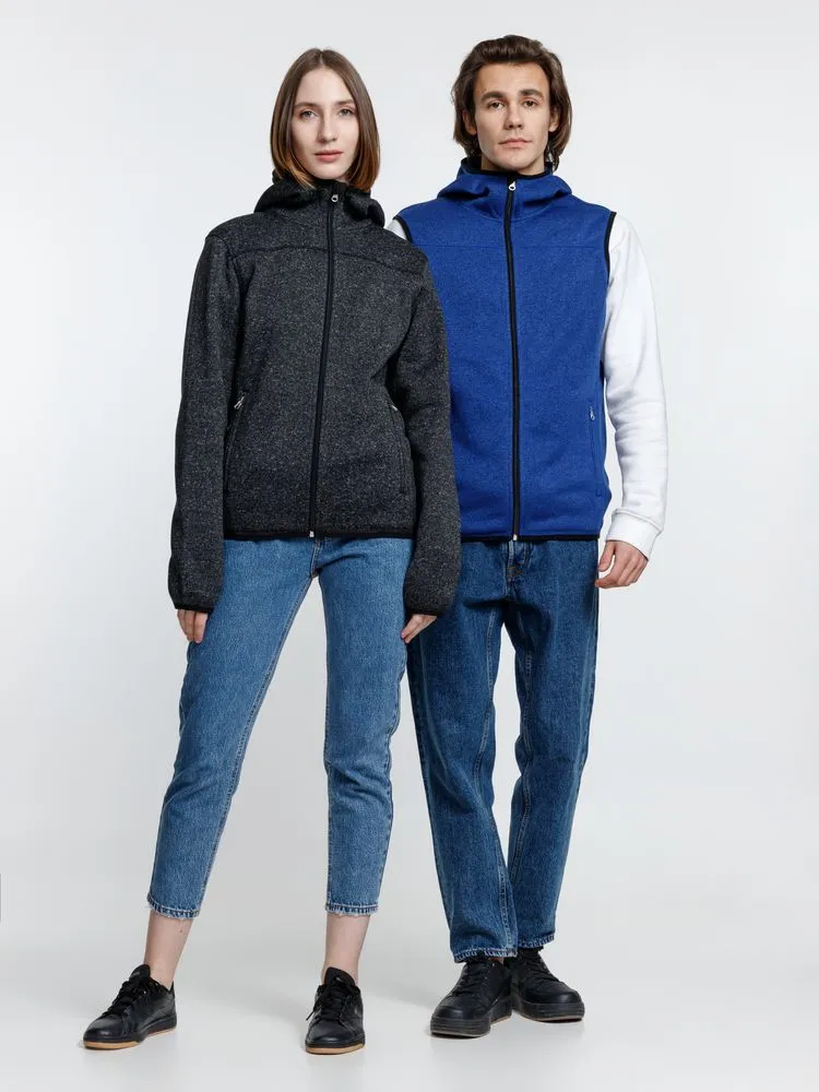 Вязаный жилет унисекс на молнии с капюшоном.