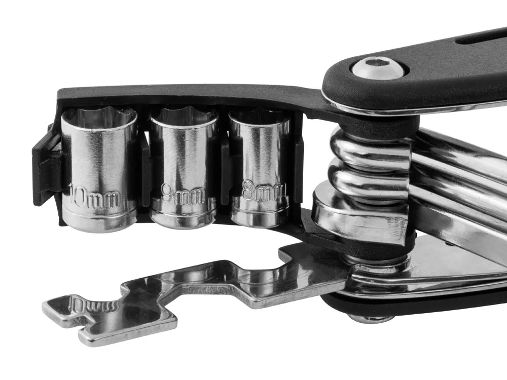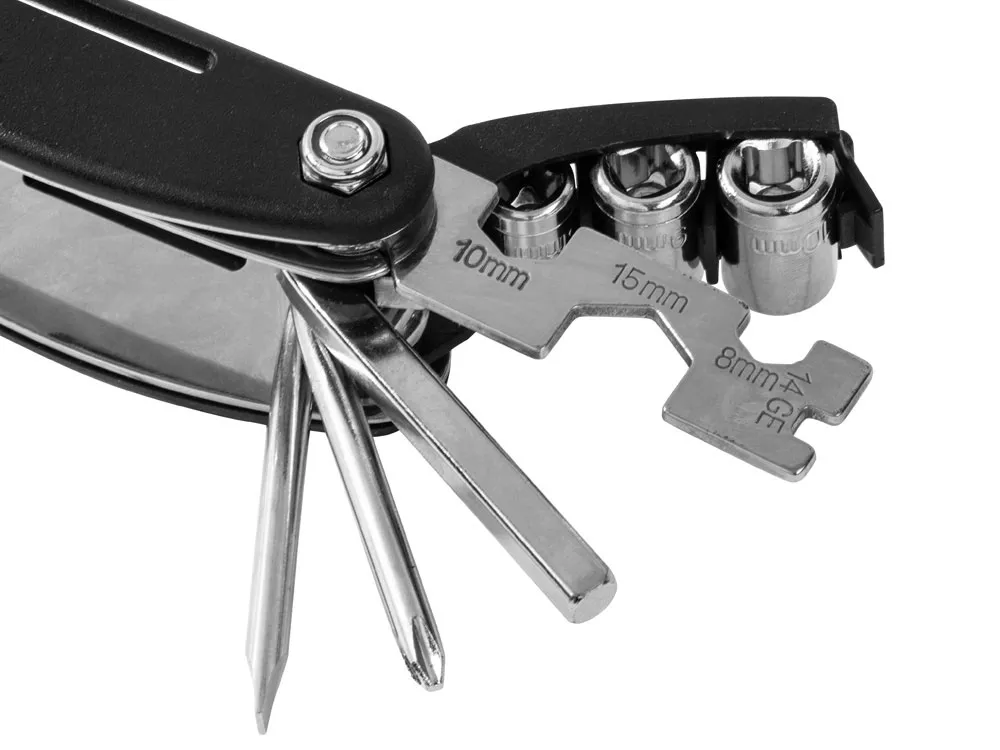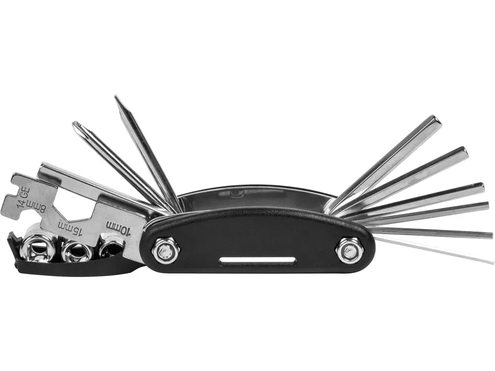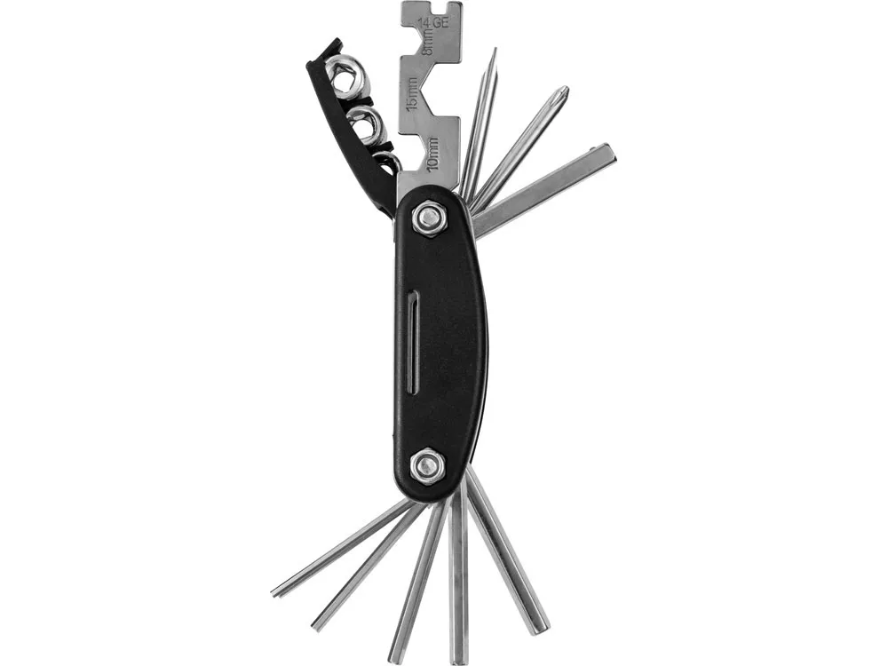 Многофункциональный инструмент от Roq сочетает в себе целых 16 функций: 6 шестигранных ключей (№ 2, № 2,5, № 3, № 4, № 5, № 6), 4 ключа (8 мм, 10 мм, 15 мм, 14GE), адаптер, крестообразную отвертку, шлицевую отвертку и 3 насадки (№ 8, № 9, № 10). - наиболее популярные ключи и отвертки в одном приспособлении - инструменты выполнены из нержавеющей стали - боковые накладки из пластика брендируются с обеих сторон - удобно ложится в руку