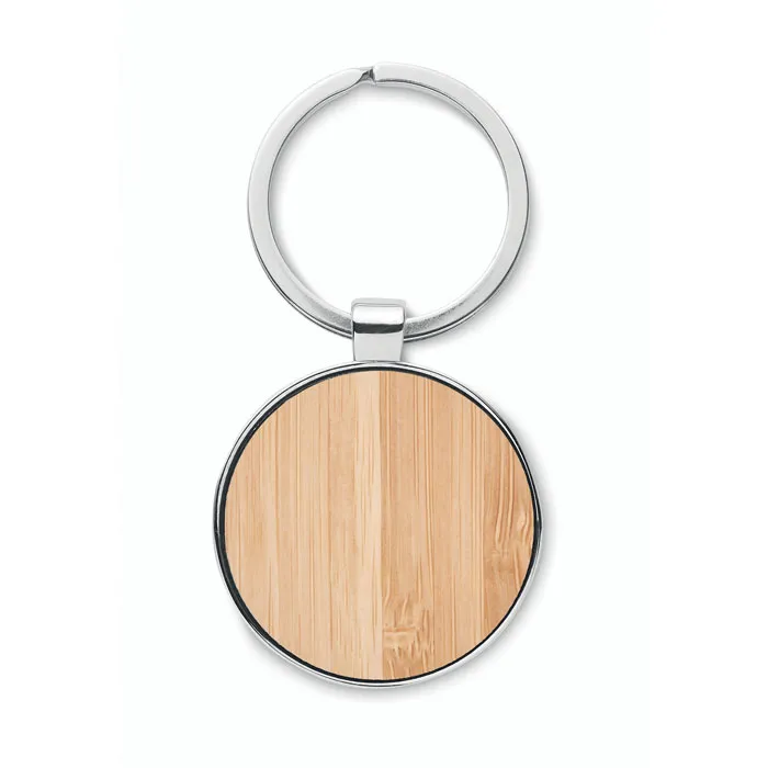 Брелок круглый из цинкового сплава с бамбуком. Бамбук является натуральным продуктом, могут быть небольшие различия в цвете