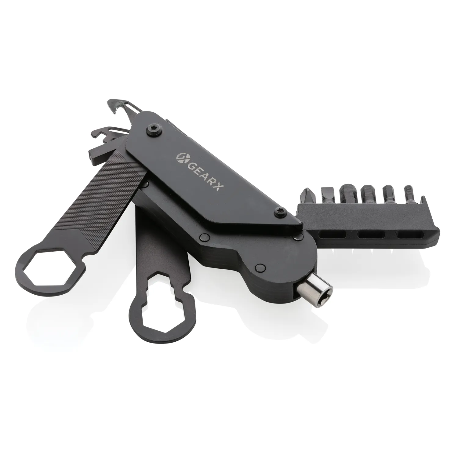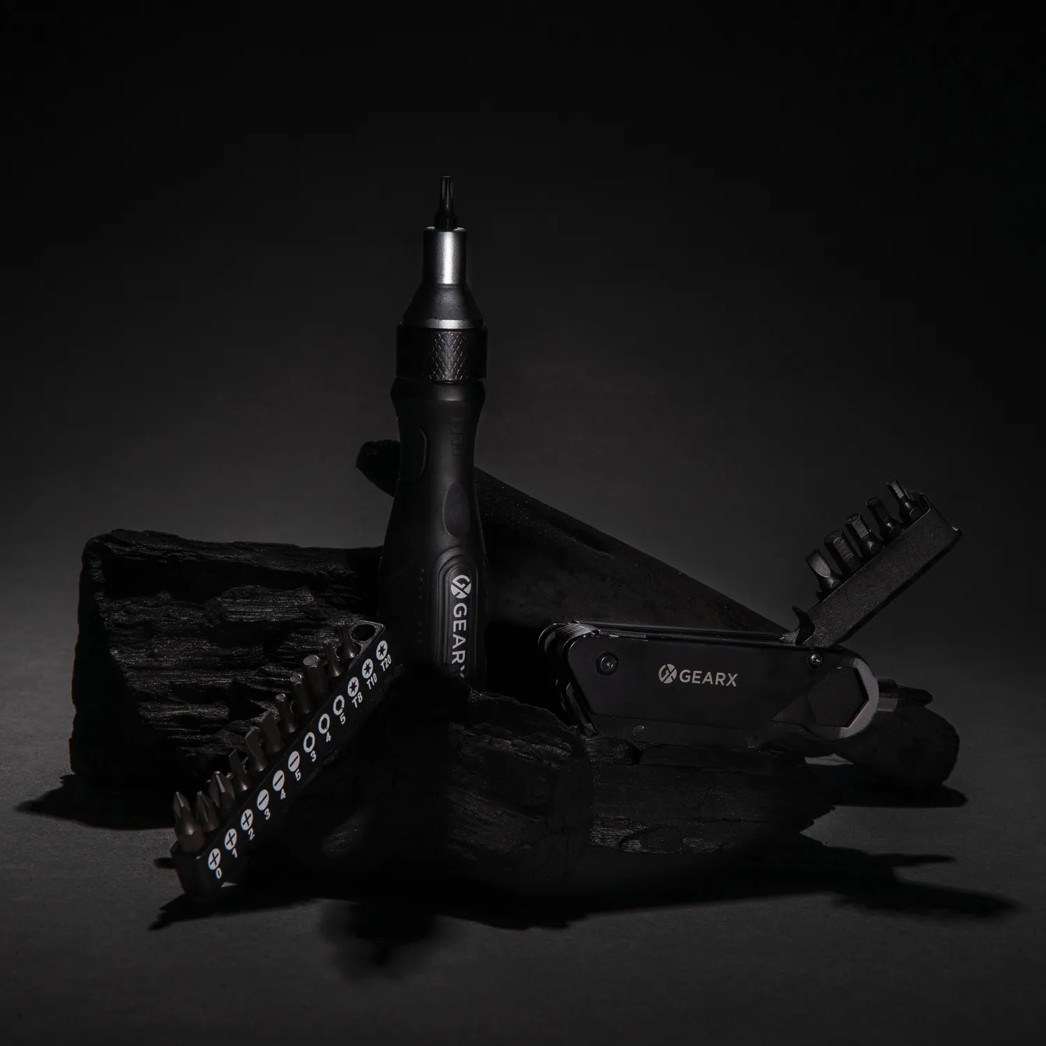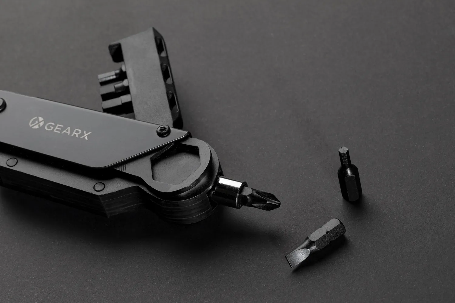 Если вам нужно что-то отремонтировать на вашем велосипеде, убедитесь, что вы делаете это стильно. Высококачественный велосипедный мультитул Gear X сочетает в себе все инструменты, необходимые для быстрого ремонта вашего велосипеда. Стильный черный корпус из алюминия отлично сочетается с инструментами из высококачественной нержавеющей стали 420 черного цвета. Надежные инструменты Gear X рассчитаны на долгий срок службы. 16 функций включают в себя: держатель для бит, встроенную кассету с битами (S2,5, S2 5 мм, S2 4 мм, S3 3 мм, S2 6 мм, S2 PH2), ключ для спиц 3,4/3,3, нож для коробок, адаптер, многофункциональный 18-мм ключ с замком, второй многофункциональный ключ 15/10/8 мм с замком, напильник. Уровень твердости бит 60-62 HRC. Уровень твердости инструментов 40-45 HRC. Поставляется в стильной подарочной коробке.
