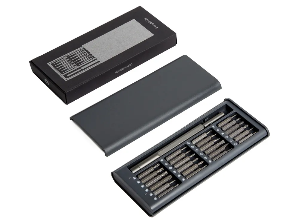 Everybit Lite — это набор отверток 24-в-1, изготовленный из прочной стали CRV и включающий в себя необходимые детали для ремонта смартфонов, планшетов, ПК и игровых консолей. В комплекте с анодированным, противоскользящим и вращающимся колпачком входят долота из закаленной стали с прорезями, крестообразные, шестигранные, Torx, пятилопастные и трехлопастные. Подходит для ремонтных работ с iPhone, iPad, MacBook Air и MacBook Pro, а также Nintendo, PlayStation и XBox. Кейс выполнен из пластика.