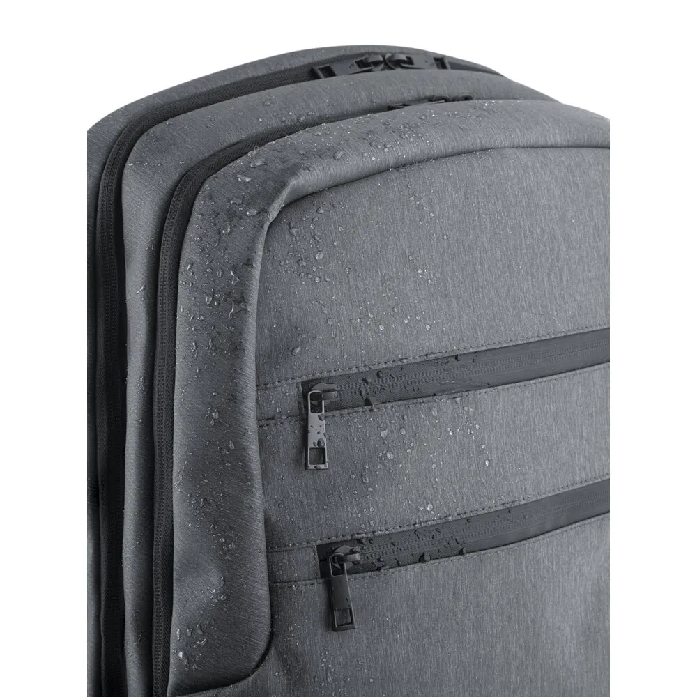 Рюкзак для ноутбука из водонепроницаемого Nylon 2Tone с 2 отделениями и лямками с набивкой. В заднем отделении есть 2 мягких перегородки с застежкой-липучкой для компьютера до 17 дюймов и планшета до 10.5 дюймов. Переднее отделение с несколькими внутренними карманами. На передней панели есть два кармана, один из которых имеет RFID-замок. По бокам есть карман для бутылок с спандекса и еще один для дождевика. Мягкая спинка имеет потайной карман и ремешок для перевозки в форме тележки.320 x 450 x 140 мм