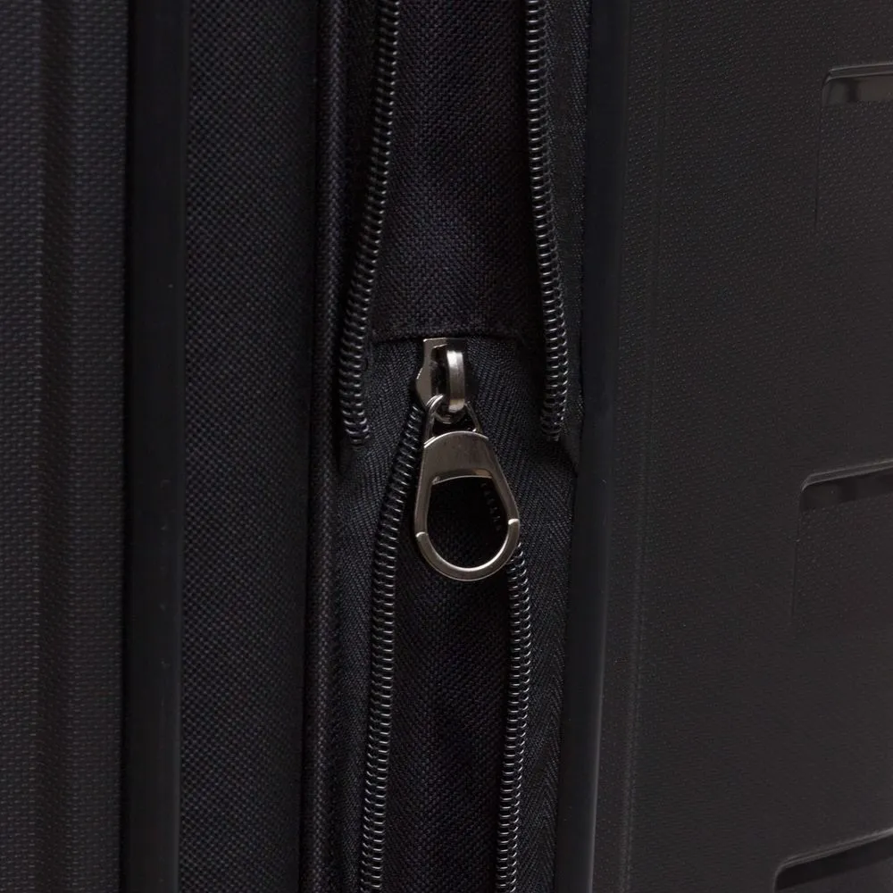 - Чемодан с 2 отделениями: одно из них с фиксирующими ремнями и сетчатой шторкой на молнии, второе — с разделителем на молнии