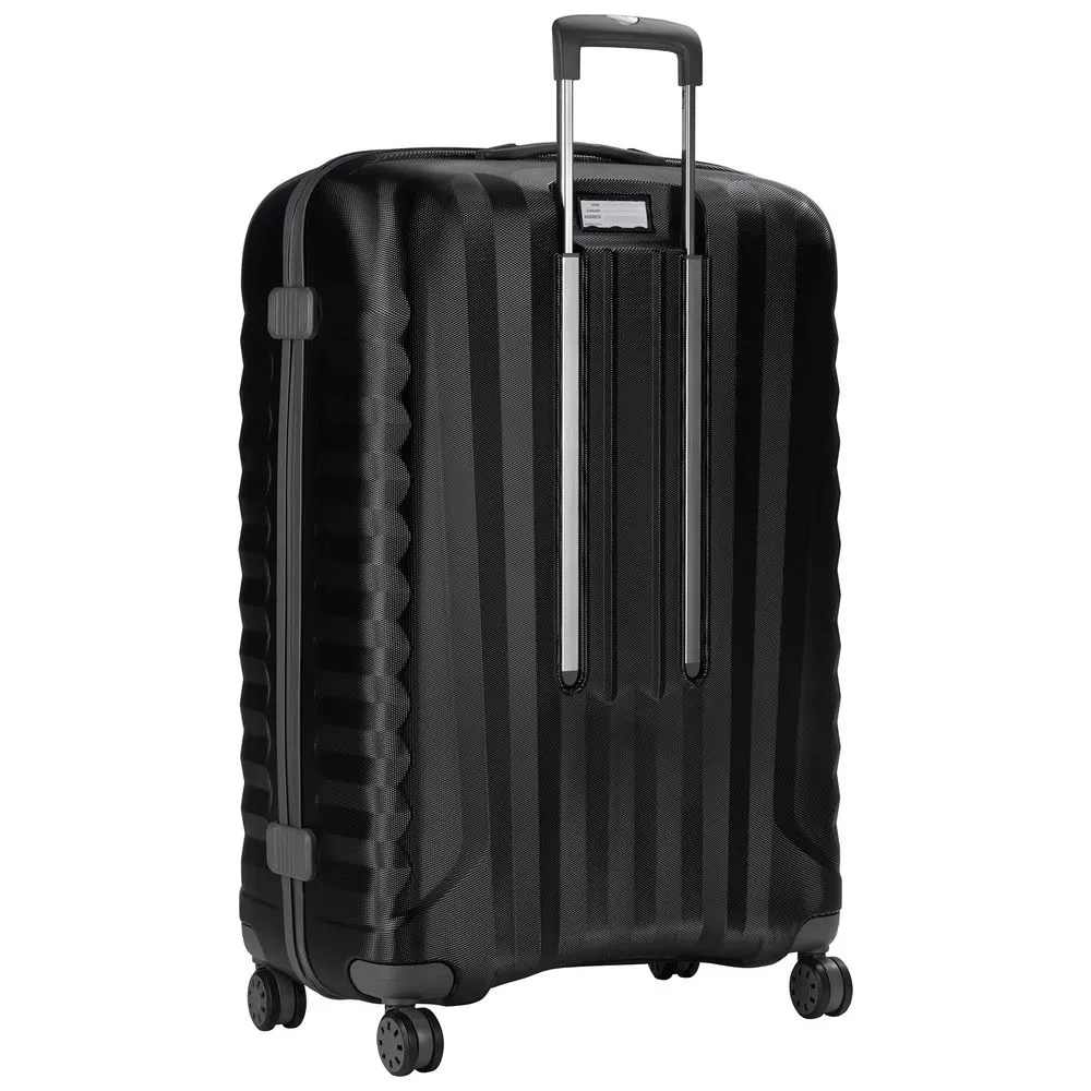 Корпус изготовлен из ударостойкого поликарбоната с покрытием, имитирующим алмазные грани, — такая технология препятствует появлению царапин и делает чемодан еще более прочным и выносливым.