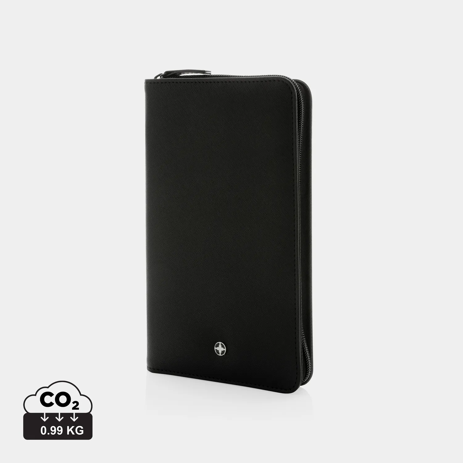 Держите все самое ценное при себе с этим роскошным дорожным органайзером Heritage от Swiss Peak. 4 слота для карт, отделение для документов и билетов, петля для ручки и даже место для смартфона! Дорожный органайзер изготовлен из 100% переработанного полиуретана и сертифицирован RCS. Это гарантирует полный контроль всей цепочки поставок вторичных материалов: от переработки до готового изделия. Общее содержание вторичного сырья: 36% от общего веса изделия. Не содержит ПВХ.
