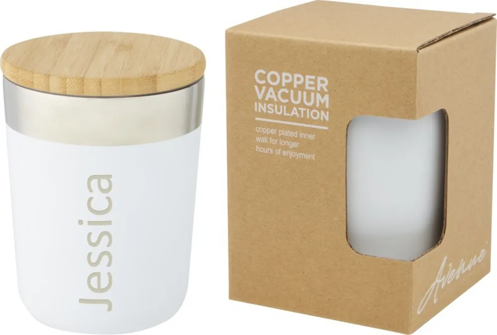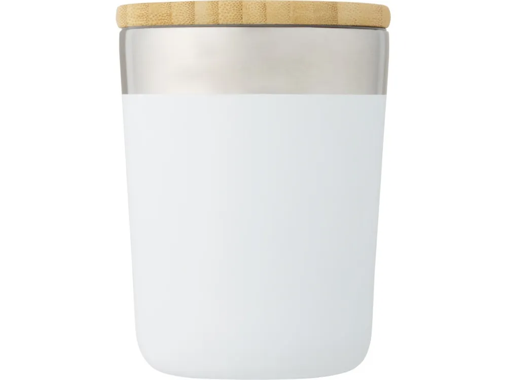 Кружка с двойными стенками и медной вакуумной изоляцией, современный дизайн и крышка из органического бамбука. Благодаря изоляции и нержавеющей стали 18/8 напитки несколько часов остаются горячими или холодными. Без содержания BPA, протестирован и одобрен согласно немецкому законодательству о безопасности пищевых продуктов (LFGB), проверен на содержание фталатов согласно нормам REACH. Подходит для большинства кофемашин, что делает эту кружку идеальным вариантом для работы и путешествий. Объем 300 мл. Поставляется в подарочной коробке из переработанного картона. Рекомендуется мыть вручную. нержавеющая сталь, Бамбуковое дерево.