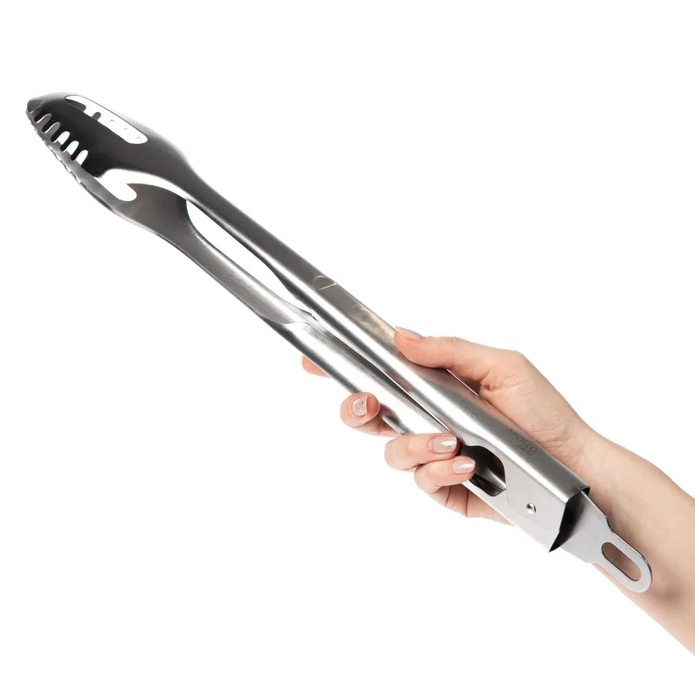 Щипцы Grillo предназначены для переворачивания продуктов на гриле, мангале или жаровне. Благодаря своей форме позволяют аккуратно захватить кусочки любого размера. Изделие имеет оптимальную для безопасного использования длину и петлю для подвешивания.