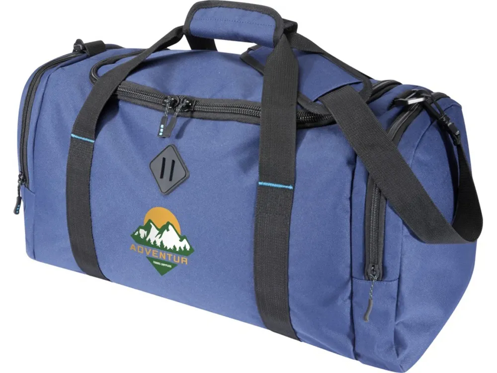 Спасайте океан по одной сумке за раз! Спортивная сумка Repreve® Ocean изготовлена из переработанного океанского пластика. Имеет большое основное отделение на молнии, два боковых кармана на молнии для обуви или аксессуаров, ручки для переноски и съемный мягкий регулируемый плечевой ремень.
