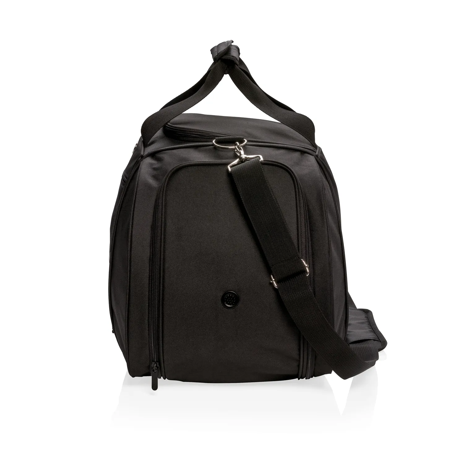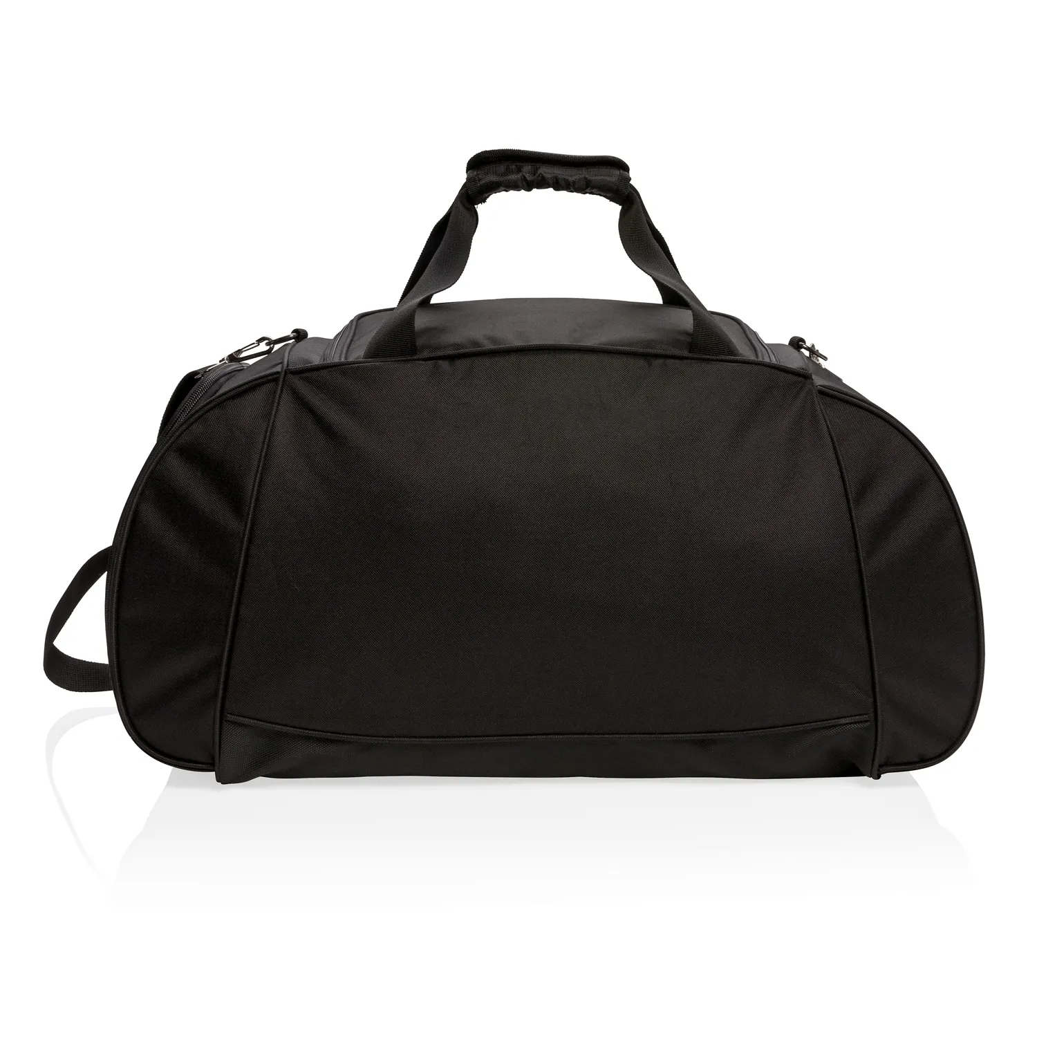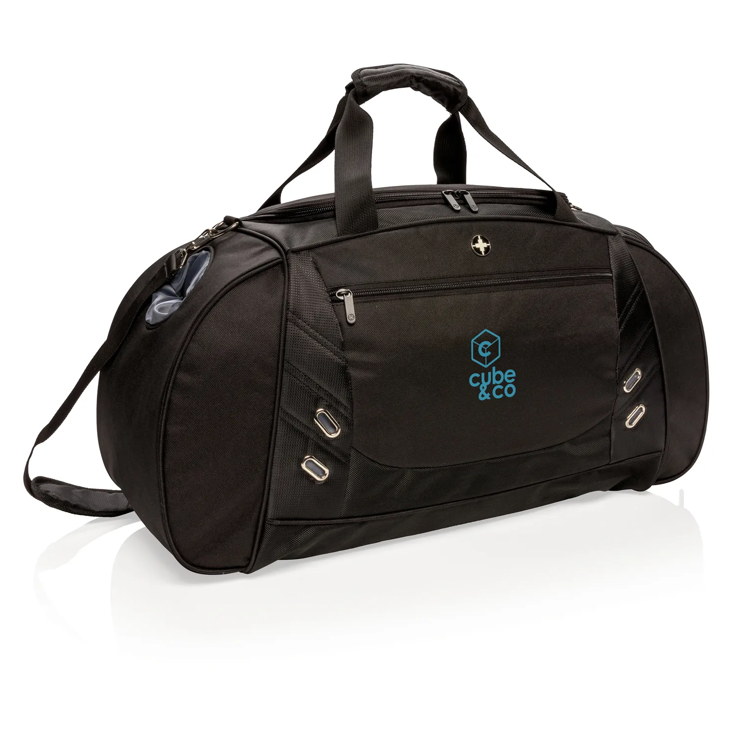 Замена артикула P707.231. Сумка Swiss Peak из сверхпрочного полиэстера прочностью 600D и 1680D прекрасно подойдет для походов в спортзал или дальней поездки. Вместительное основное отделение закрывается П-образной молнией, есть специальное отделение для обуви с вентиляцией и боковой карман для бутылки. Универсальные удобные двойные ручки и регулируемый наплечный ремень. Не содержит PVC.