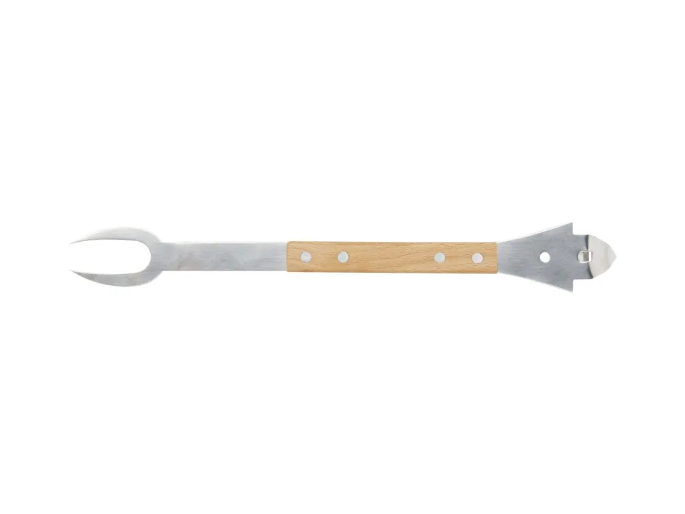Этот удобный набор инструментов для барбекю 4-в-1 включает в себя лопатку, вилку, консервный нож и открывалку для бутылок — все они изготовлены из дуба и нержавеющей стали, сертифицированной RCS. Удобство и комфорт этого инструмента делают его идеальным подарком для любого любителя барбекю.