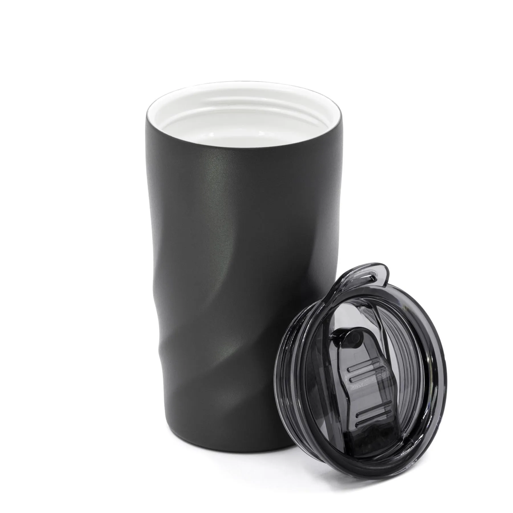 Термостакан изготовлен из переработанной нержавеющей стали без содержания BPA и имеет внутреннее керамическое покрытие, которое сохраняет естественный вкус напитков. Прозрачная крышка из прочного тритана с герметичной резьбой защищает от протечек, устойчива к высоким температурам и не бьётся. Оснащена удобной петлёй-держателем, к которой можно прикрепить наплечный ремень (не входит в комплект). Благодаря технологии изоляции Coppertech©, термостакан сохраняет температуру до 12 часов для холодных напитков, до 18 часов — со льдом и до 4 часов — для горячих. Допускается мытье в посудомоечной машине. Сертифицирован по стандарту RCS (Recycled Claim Standard). Объём: 400 мл.