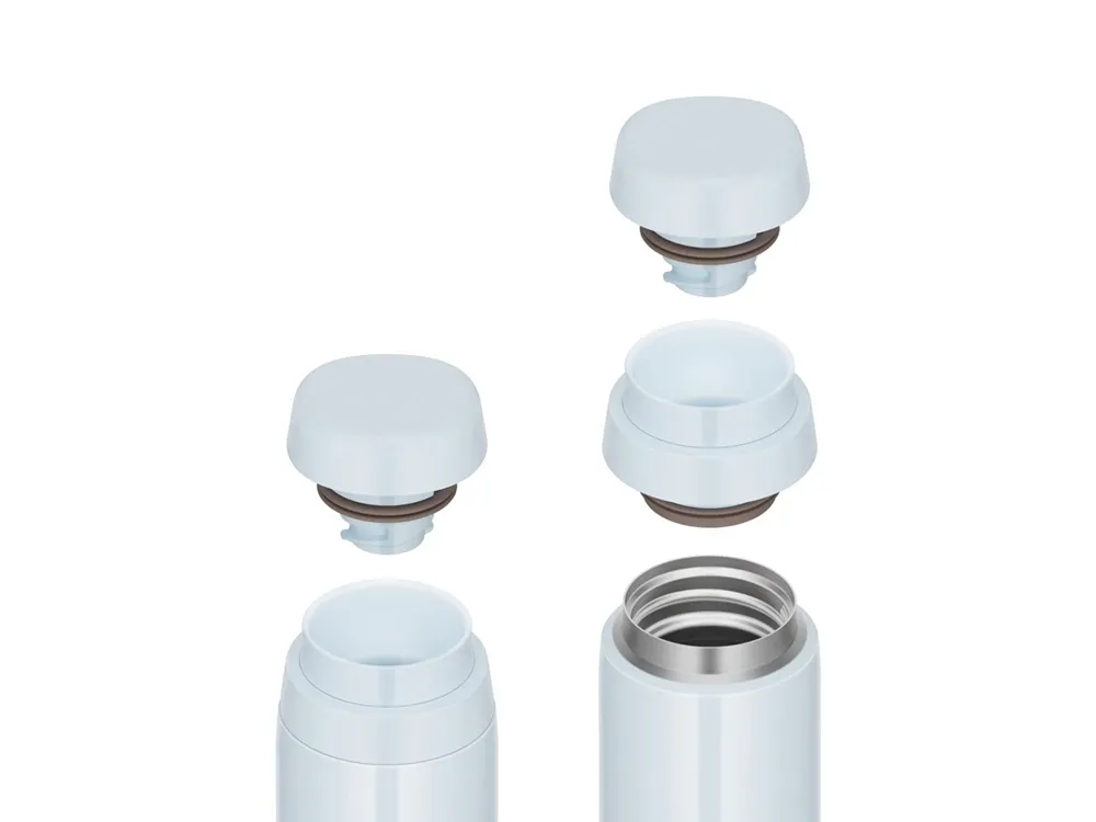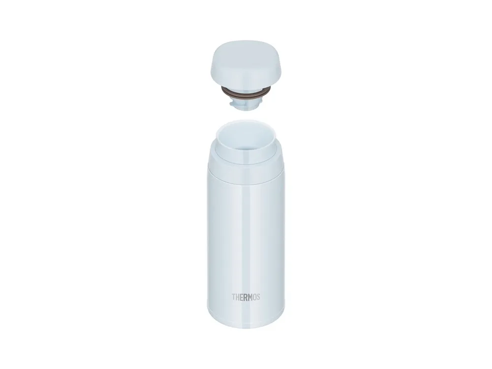 Линейка суперкомпактных и суперлёгких термокружек всемирно известного производителя THERMOS пополнилась оригинальной новинкой серии JOR. Она предназначена не только для классических напитков, но также подходит для витаминных коктейлей, ягодных или овощных смузи, напитков со льдом и даже спортивного питания. Несмотря на то, что объём термокружки рассчитан на полноценную порцию напитка, она весит всего лишь 145 г. Помимо малого веса, к преимуществам модели относятся компактность и небольшие габариты. Высота кружки составляет всего 15,5 см, что делает её удобной для переноски в женской сумке, портфеле или рюкзаке. Диаметр основания 6,0 см позволяет легко разместить её в автомобильном подстаканнике. Кроме того, термокружка совместима с большинством кофемашин, так что вы можете наполнить её прямо из аппарата, минуя дополнительные ёмкости. Миниатюрная модель JOR-250 WHGY обладает большими возможностями и способна сохранять напитки горячими не менее 6 часов, а холодными – в течение 8 часов благодаря вакуумной термоизоляции. Влияние температуры окружающей среды на содержимое термокружки снижает и крышка-пробка двухуровневой конструкции – верхняя крышка быстро открывается и закрывается, достаточно повернуть её на четверть оборота. Вторая часть крышки-пробки – круговой поильник с питьевым отверстием, позволяющим использовать термокружку для густых напитков и напитков со льдом, а также пить с любой стороны. Кромка поильника имеет скруглённую форму, что добавляет комфорта при питье. Крышка-пробка разбирается, чтобы каждую деталь можно было тщательно промыть. Технология вакуумной термоизоляции позволяет не только сохранять температуру напитков, но и предотвращает нагрев или охлаждение корпуса термокружки. Благодаря этому термокружку удобно и безопасно держать в руке, носить в сумке и ставить на любые поверхности. Использование инновационной технологии бесшовной сварки укрепляет конструкцию термоса, что способствует длительному сохранению вакуума между колбой и корпусом. Поэтому термокружка JOR отличается длительным сроком службы. На этот показатель влияют и материалы, используемые при производстве термоса. Модель THERMOS® JOR-250 WHGY полностью соответствует Международному стандарту качества EN12546-1:2000. Все материалы, из которых изготовлен термос, долговечные, безопасные, не содержат бисфенол-А (BPA free), не выделяют и не впитывают посторонние запахи. Корпус и колба - из пищевой коррозионностойкой стали 18/8 AISI 304, отличающейся прочностью термостойкостью и инертностью по отношению к содержимому. Поэтому напитки остаются в термокружке вкусными, ароматными и свежими длительное время. Крышка-пробка произведена из термостойких сополимеров нового поколения, относящихся к классу пищевых, прокладка и уплотнитель - из гигиеничного гипоаллергенного силикона, устойчивого к воздействию высоких температур, обеспечивает абсолютную герметичность изделия. Устойчивое к износу покрытие нежного светло-голубого цвета придаёт внешнему виду термокружки лёгкости и воздушности.