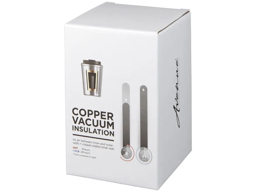 Герметичная медная вакуумная термокружка Thor объемом 360 мл. Двустенная вакуумная конструкция из нержавеющей стали с медной изоляцией позволит вашему напитку оставаться холодным в течение 24 часов и горячим - как минимум 8 часов. Кроме того, конструкция препятствует образованию конденсата на внешней стороне термокружки. Закручивающаяся герметичная крышка. Современное, долговечное покрытие из порошкового материала. Объем - 360 мл. Упакована в подарочной коробке Avenue. Нержавеющая сталь.