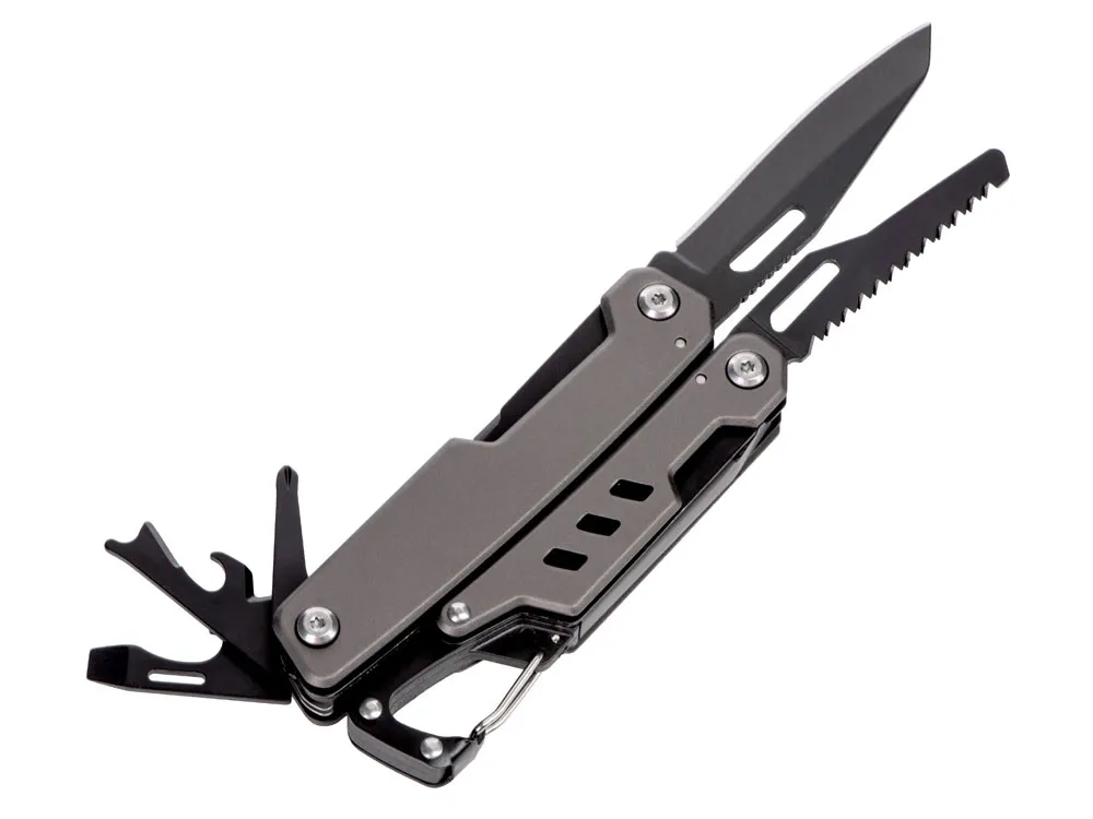Ranger — это многофункциональный инструмент для ежедневного ношения, предназначенный для современных кочевников. Он сочетает в себе более 11 полезных инструментов в компактном размере. Ranger подготовит вас к неожиданным возможностям с помощью открывалки для бутылок, консервного ножа, отверток, кусачек для проволоки и комбинированного ножа, а также дополнительных утилит для различных поделок, таких как плоскогубцы, пила, напильник по дереву / металлу и т.д. Это делает Ranger единственным гаджетом, который вам нужен, куда бы вы ни отправились! Ranger рассчитан на максимальную долговечность, а все компоненты изготовлены из закаленной мартенситной нержавеющей стали и устойчивы к коррозии. Функции: 1. Плоскогубцы 2. Плоскогубцы с игольчатым наконечником 3. Кусачка для проволоки 4. Устройство для зачистки кабеля 5. Короткий нож с фиксирующим лезвием 6. Пила по дереву с фиксирующим лезвием 7. Карабинный крючок 8. Крестообразная отвертка 9. Плоская отвертка 10. Открывалка для бутылок 11. Консервный нож