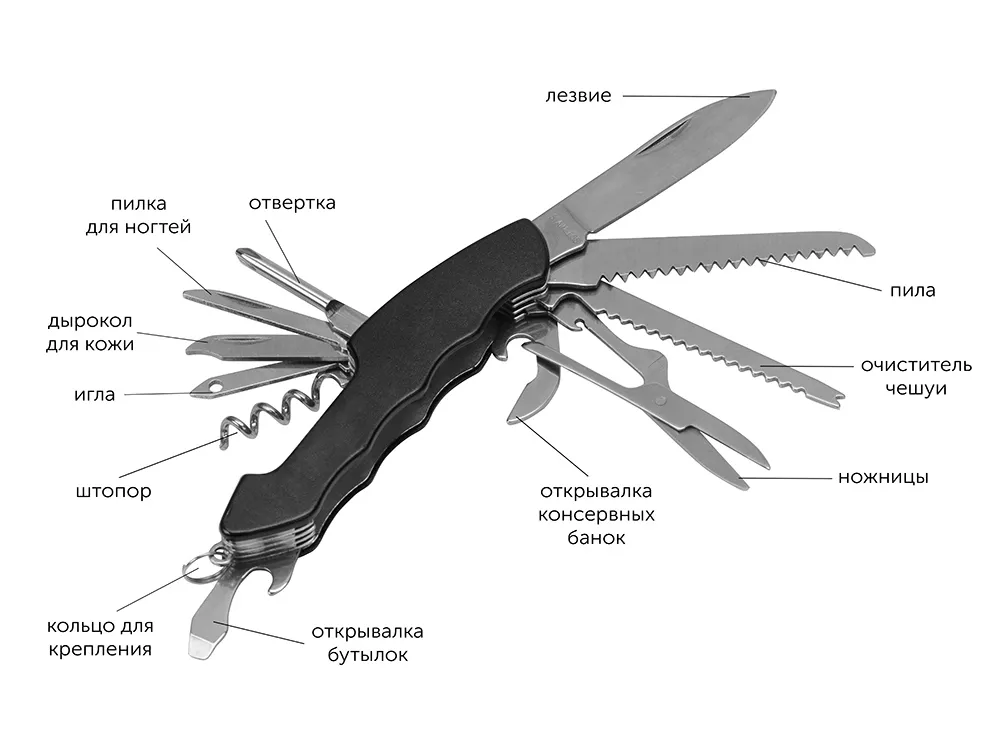 Набор "Decker" - отличный подарок для всех любителей приключений и активного отдыха на природе. В него входит мультитул, фонарик и компас. Мультитул имеет 12 функций: лезвие, ножницы, пила, очиститель чешуи, открывашка для консервных банок, штопор, открывашка для бутылок, отвертка, кольцо для подвешивания, дырокол для кожи, пилка для ногтей и игла. Фонарик работает с помощью 1 батарейки формата АА. Батарейка в комплект не входит.
