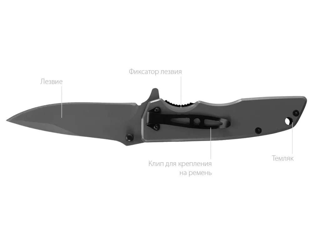Складной нож с титановым покрытием от roq — почти готовый мерч, которому не хватает только вашего лого. Титановое покрытие корпуса и лезвия защищает от механических повреждений и увеличивает коррозионную стойкость изделия. Нож очень удобен для использования — выступ для быстрого открытия ножа указательным пальцем на ощупь, на лезвии с двух сторон — специальные выступы для открытия большим пальцем, а фиксатор Liner-lock не дает ножу случайно захлопнуться. На рукоятке имеется отверстие для ремешка. • 420 марка стали • титановое покрытие • удобен для использования — есть специальные выступы для быстрого раскрытия ножа на ощупь • безопасность обеспечена фиксатором, защищающим от захлопывания • отверстие для ремешка