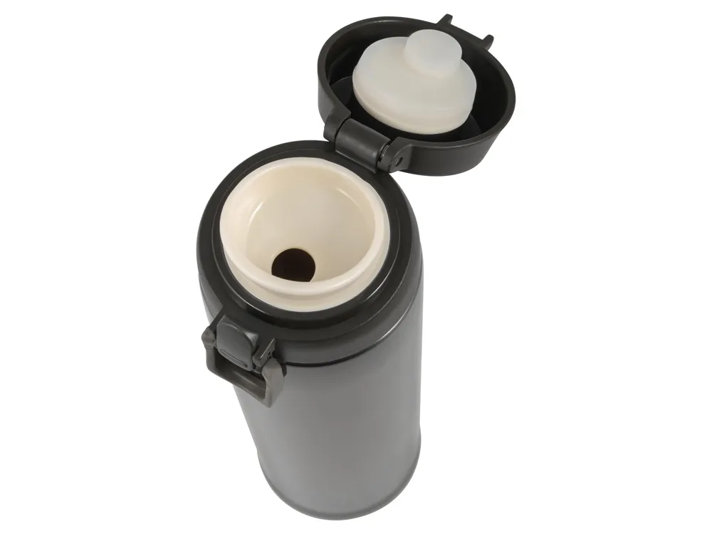 Термос для напитков с откидной крышкой - комфортное решение для любителей чая или кофе в дороге. Компактные размеры делают термос удобным для хранения в сумке, а защиту от проливания напитка обеспечивает дополнительный фиксатор кнопки открывания. Откидная крышка, фиксирующаяся при открывании в положении 180о, позволяет пользоваться термосом одной рукой, что весьма удобно для автолюбителей. Стильным термос делает не только форма, но и благородный цвет темной стали. Модель подходит для подстаканников велосипедов и автомобилей. Держит тепло 8ч. Держит холод 12ч.
