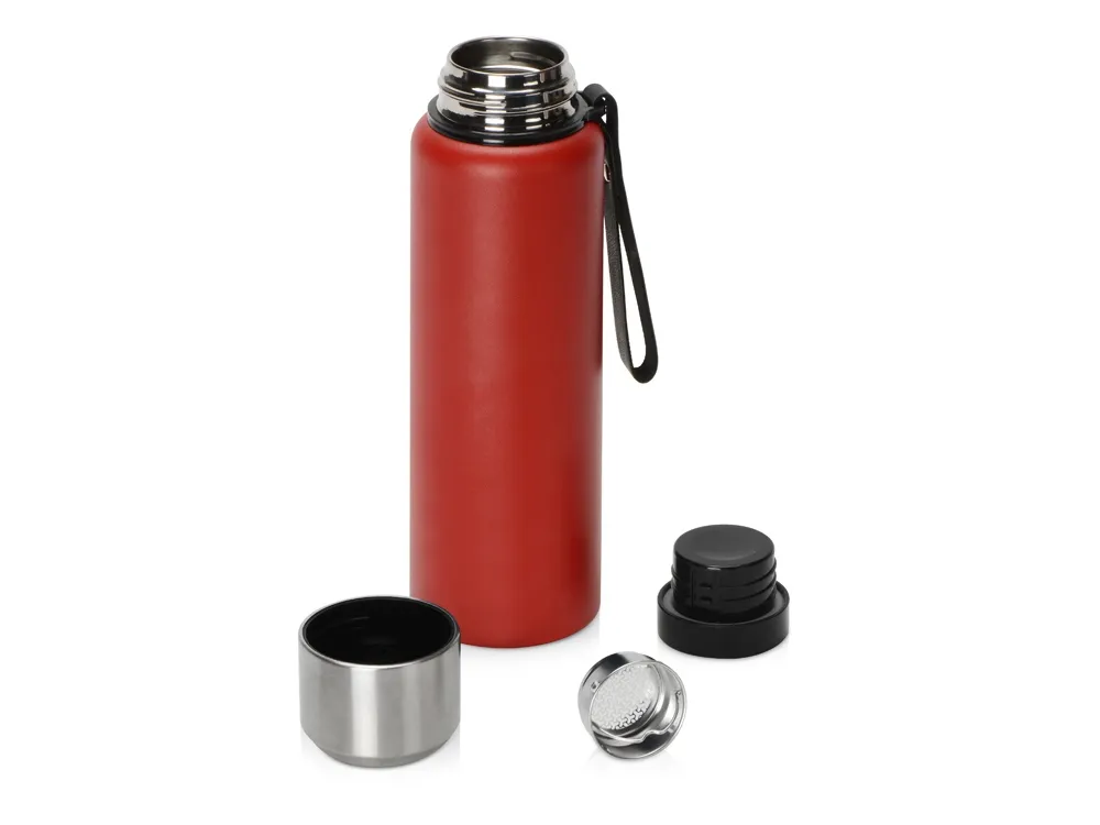 Вакуумный термос c двойными стенками из «пищевой» нержавеющей стали 304 марки для небольших путешествий и отдыха на природе. Надежно удерживает тепло и холод в течение 24 часов. Крышку можно использовать в качестве чашки. В комплекте имеется съемное ситечко из нержавеющей стали. Имеется прочный и удобный ремешок для переноски. Корпус покрыт специальной порошковой краской для надежного хвата и защиты от царапин. Объем 800 мл. - Удержание тепла и холода в течение 24 часов. - Удобный ремешок для переноски. - Матовое порошковое покрытие. - Двойные стенки из нержавеющей стали 304 (18/8). - Съемное ситечко. Номинальный объем термоса 800 мл, при использовании ситечка максимальный полезный объем составит 710 мл.