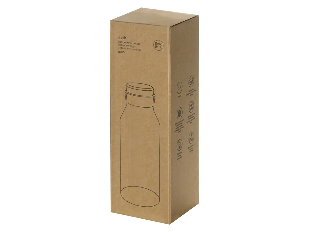Графин для воды с пробковой крышкой «Fresh» от Eat&Bite прекрасно подходит для воды, прохладительных напитков и лимонада. Он изготовлен из боросиликатного стекла, которое отличается повышенной термической стойкостью. «Fresh» обладает довольно внушительным объёмом в 1 литр и широким горлышком, что позволяет его использовать для хранения бакалеи. - Натуральная пробковая крышка - Стильный дизайн - Большая площадь для нанесения изображения Графин без крышки разрешается использовать в посудомоечной машине. Запрещается разогревать в микроволновой печи.