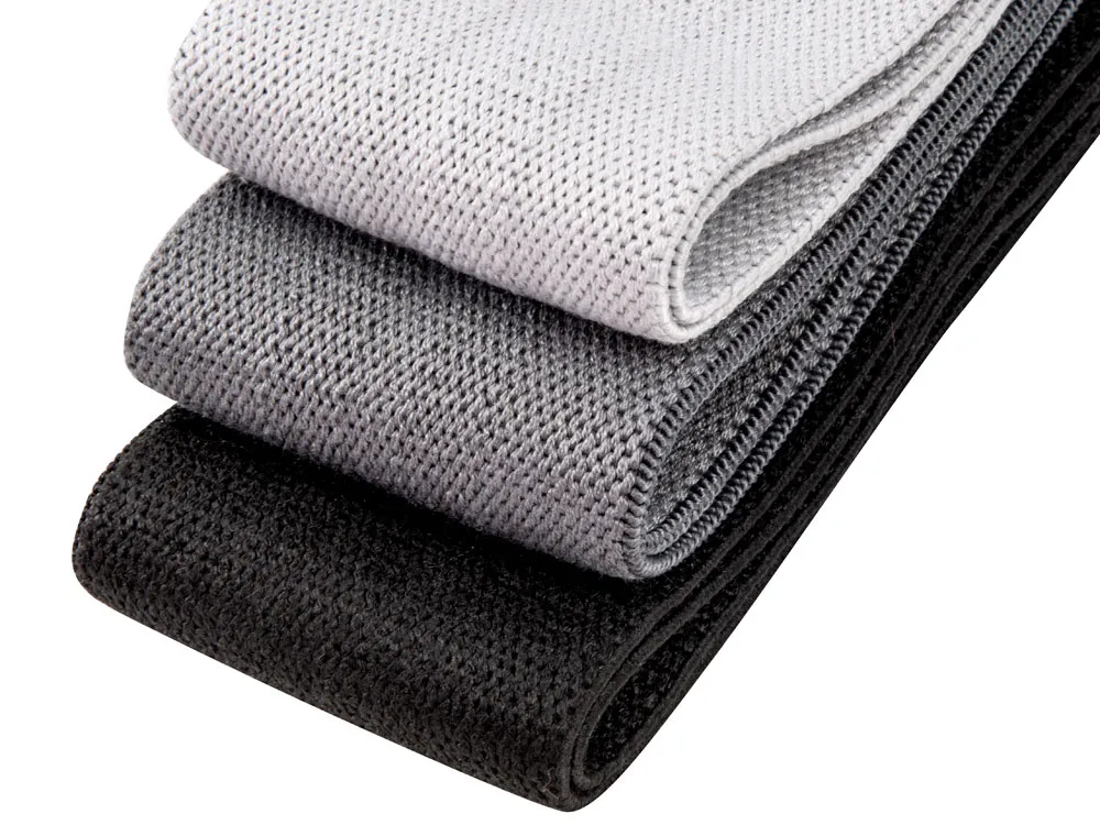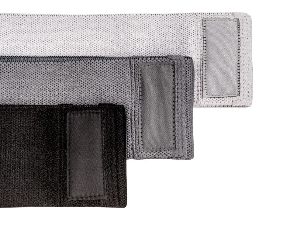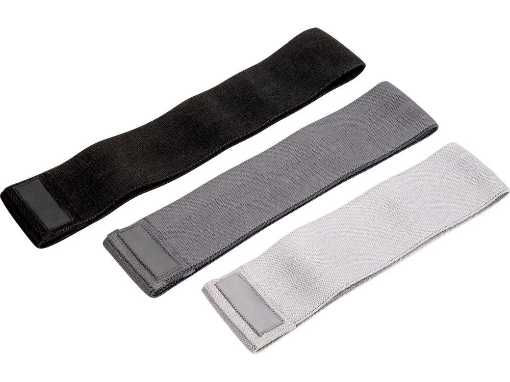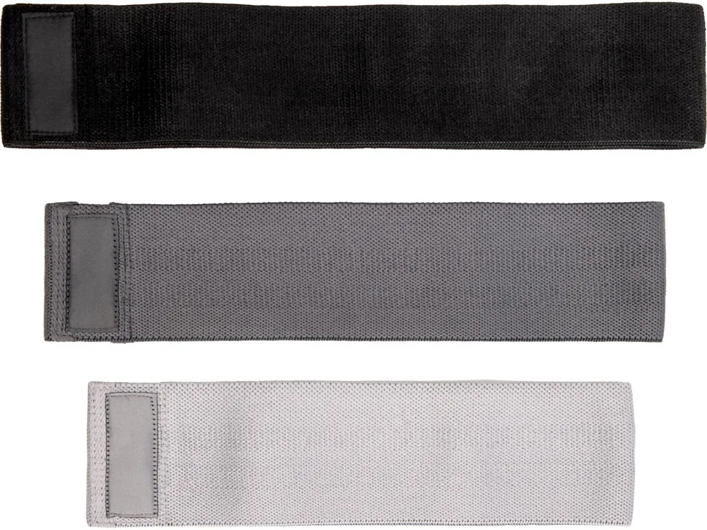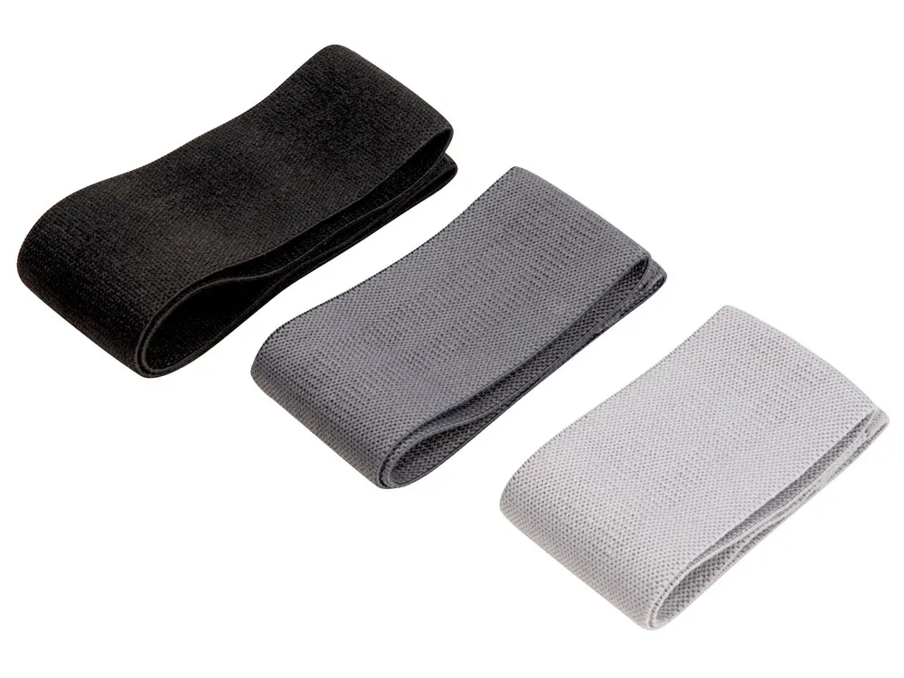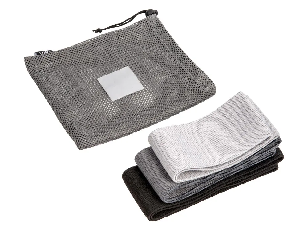 Сет резинок для фитнеса от Vibe упакован в мешочек из сетчатой синтетической ткани, которая обеспечивает циркуляцию воздуха, благодаря которой ткань инвентаря быстрее просохнет после интенсивной тренировки. Резинки выполнены из ткани, что обеспечивает не только долговечность, но и позволяет стирать их при температуре 20 градусов как в стиральной машине, так и на руках. Ширина резинок обеспечивает комфорт во время занятий, чем шире резинка — тем меньше она скручивается. С внутренней стороны каждая резинка прошита силиконовой вставкой против скольжения по время тренировки. - 3 удобные мягкие резинки для занятий спортом - можно стирать при 20 градусах - поставляется в сетчатом мешочке - компактный и удобный сет, можно брать в поездки - три степени сопротивления: светло-серый 10-15 кг, темно-серый 15-20 кг, черный 20-25 кг