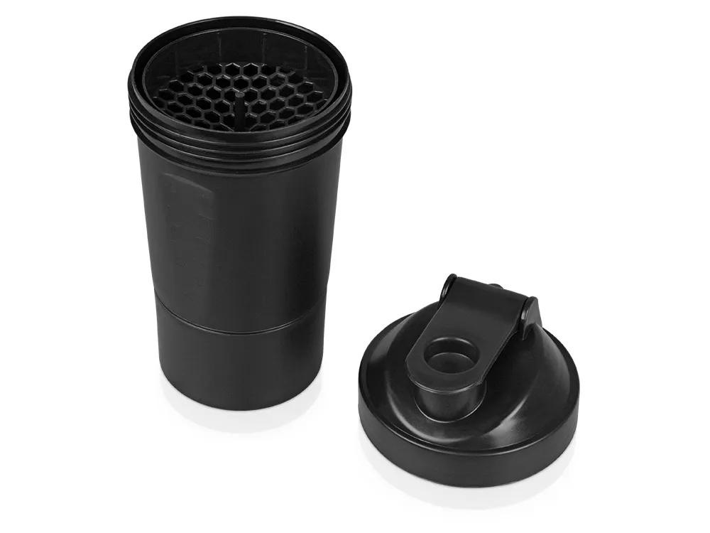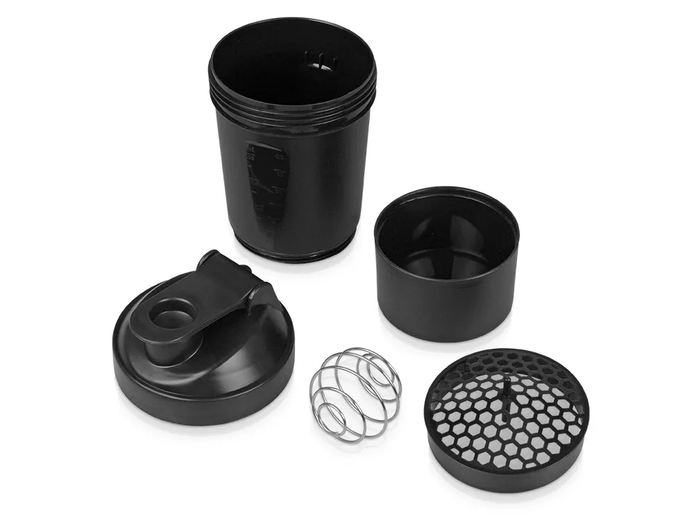 Шейкер для спортивного питания - это один из необходимых аксессуаров для спортсменов и людей, ведущих активный образ жизни. В нем можно приготовить протеиновый коктейль или фруктовый напиток. Шейкер классической формы, он удобно лежит в руке, к донышку прикручивается емкость для смешивания (таблетница), в которой можно хранить спортивные добавки: протеиновый порошок, витамины и другие концентраты. Внутри колбы имеется пластиковая сетка, чтобы процеживать спортивный напиток, а также металлический размешиватель, который растворяет порошок в напитке без комочков. Объем - 400мл. Шейкер изготовлен из пищевого пластика, он герметичен и легко моется. Шейкер имеет приятное на ощупь матовое покрытие, но подверженное незначительным дефектам (царапинам). Шейкер с нанесением - это классный и полезный спортивный подарок для коллеги, руководителя и сотрудников компании.