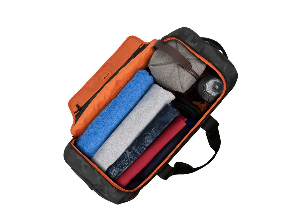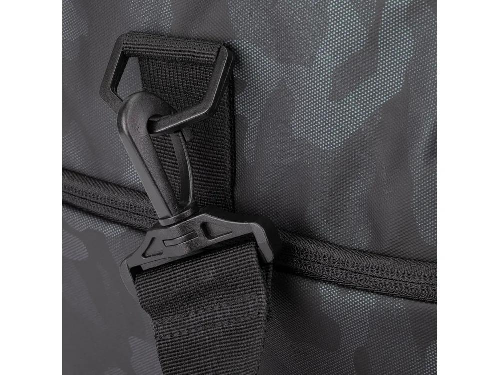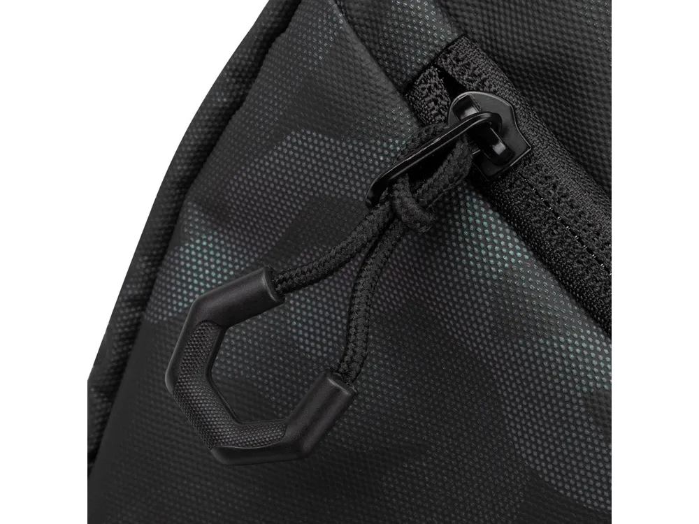 Выполнена из высококачественной водоотталкивающей ткани с ламинированием. • U-образный клапан на молнии для легкого доступа в основное отделение. • Внутренний сетчатый карман на молнии для паспорта, бумажника. • Внешний карман на молнии для смартфона. • Съемный плечевой ремень