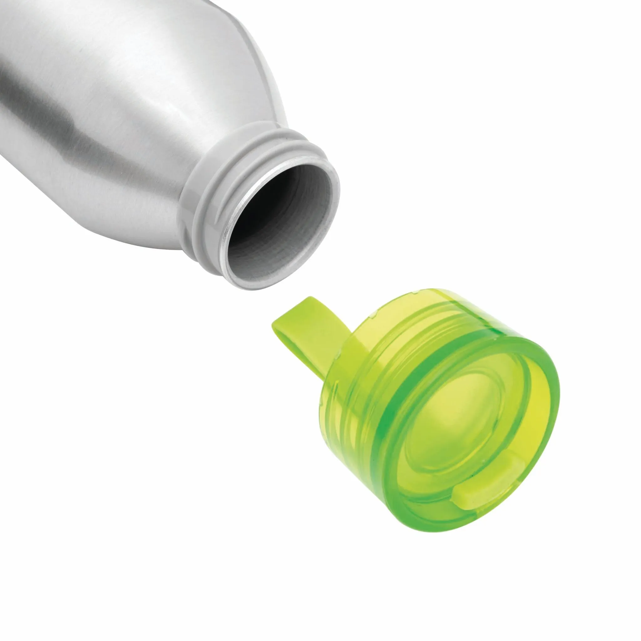 Алюминиевая бутылка COLOURED: цветная закручивающаяся пластиковая крышка, силиконовая петля на руку, объем: около 650 мл.
