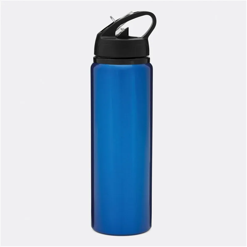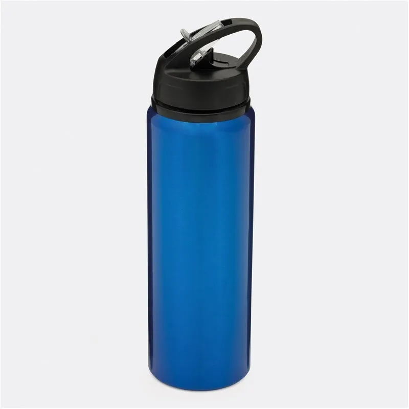 Алюминиевая бутылка SPORTY TRANSIT: откидное отверстие для питья, съемная соломинка, прикрепленная к крышке, с ручкой, объем 800 мл. ø75 x 235 мм