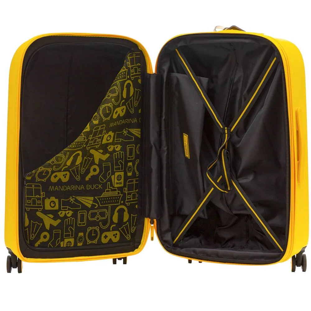Коллекция чемоданов из поликарбоната Logoduck+ стала настоящим бестселлером: обтекаемые изящные формы, колеса в тон корпуса, крупный логотип бренда, подкладка с принтом и яркие цвета делают их уникальными в своем роде. Упаковочные ремни, разделитель на молнии и дополнительный карман для мелочей помогут аккуратно упаковать все необходимые вещи для поездки на 1-2 недели.