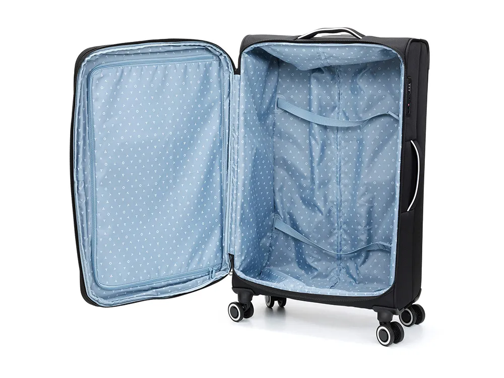 Коллекция TORBER НЕРО названа в честь озера Неро — одного из древнейших водоёмов России, чей возраст превышает 500 000 лет. Важная особенность коллекции — экологичный подход к производству: - основная ткань корпуса на 100 % изготовлена из переработанного пластика; - каждый чемодан — вклад в сохранение природы и ответственное потребление; - сочетание экологичности и высочайшего качества материалов Размер S (для ручной клади): габариты: 40 × 20 × 55 см; объём: 37 л; вес: 2,65 кг; Соответствует стандартам ручной клади большинства авиакомпаний. Каждый чемодан TORBER НЕРО оснащён: - встроенным замком TSA — безопасность ваших вещей и удобство при прохождении таможенного контроля; - телескопической ручкой с фиксатором — комфортная регулировка высоты; - 4 двойными колёсами с вращением 360° — плавный ход и манёвренность в любом направлении; - боковой ручкой для переноски — удобство при перемещении в ограниченном пространстве; - Х‑образными утягивающими фиксирующими ремнями — надёжная фиксация содержимого; - возможностью увеличения вместимости на 4 см — дополнительное пространство при необходимости. Почему TORBER НЕРО — выбор осознанных путешественников? - Экологичность: использование переработанных материалов — вклад в будущее планеты. - Надёжность: прочные материалы и продуманная конструкция гарантируют долгий срок службы. - Удобство: эргономичные ручки, плавные колёса и продуманная организация пространства. - Безопасность: замок TSA защищает ваши вещи от несанкционированного доступа. - Стиль: глубокий чёрный цвет подходит для любого образа и случая.