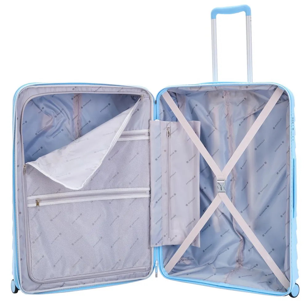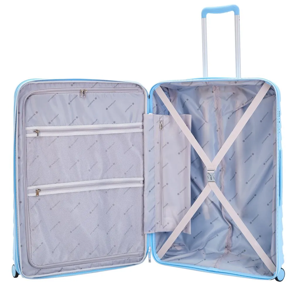 Чемодан из женственной коллекции Victoria имеет стильную обтекаемую форму и узор с плавными волнами, которые выделяют его среди других. Нежные оттенки придают чемодану элегантный вид, подчеркивая индивидуальность и хороший вкус путешественницы.