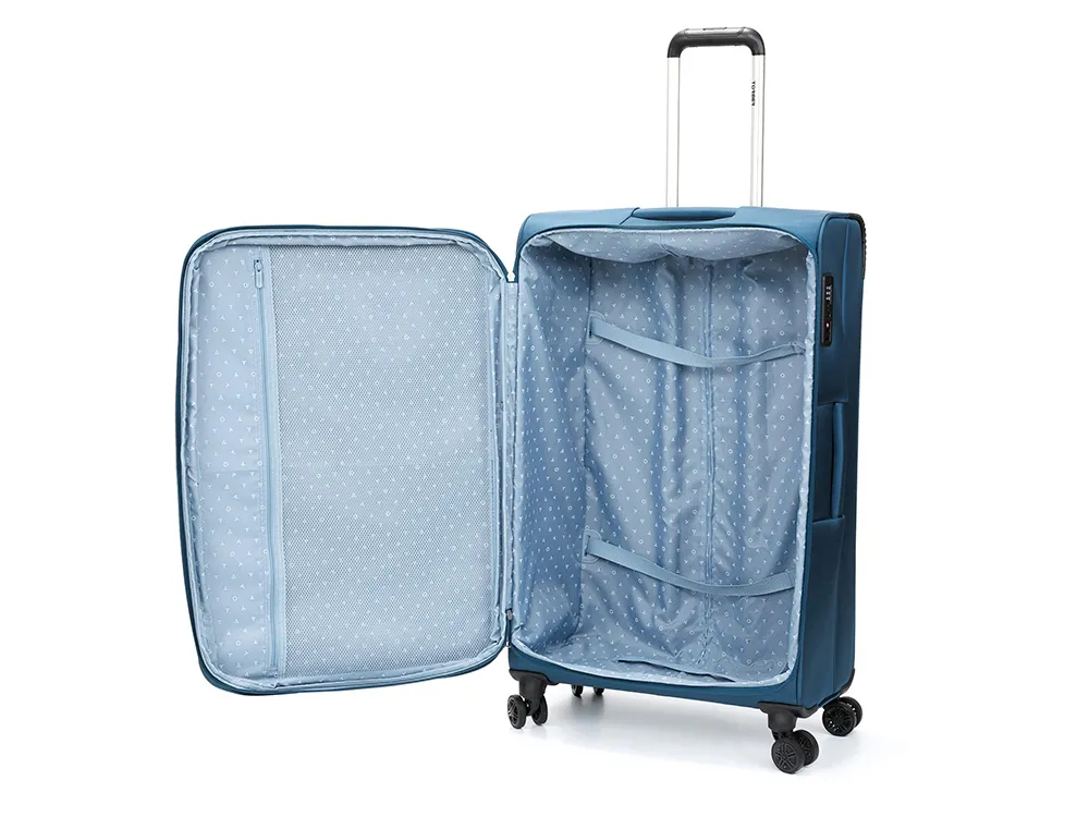 Представьте себе багаж, который не просто служит функциональной цели, а рассказывает историю — о бескрайних просторах, кристально чистых водах и суровой красоте севера. Именно такой философией пронизана новая коллекция чемоданов и сумки на колёсах TORBER ВИВИ. Эта серия посвящена озеру Виви — одному из самых загадочных водоёмов России. Расположенное в сердце плато Путорана, озеро Виви хранит множество тайн. А ещё именно здесь, на его берегах, находится географический центр нашей страны. Глубокий синий цвет коллекции — это не просто дизайнерское решение, а прямая отсылка к завораживающим водам озера, манящим своей прохладой и мистической красотой. TORBER ВИВИ воплощает дух приключений и жажду открытий — идеальный спутник для тех, кто не боится новых маршрутов. Чемоданы TORBER ВИВИ: надёжность в каждой детали. Размер L (максимум вместимости) — для тех, кто отправляется в длительное путешествие. Внушительные размеры 48 х 28 х 78 см, объём 89–102 литра, вес 3,6 кг. Здесь найдётся место для всего необходимого. Ключевые особенности чемоданов: - Прочный материал — полиэстер (жаккард), устойчивый к износу. - Встроенный замок TSA — безопасность ваших вещей и удобство при прохождении таможни. - Телескопическая ручка с фиксатором — комфортная регулировка высоты. - 4 двойных колеса с вращением 360° — плавный ход и манёвренность. - Фиксирующие ремни — надёжно удерживают содержимое. - Возможность увеличить объём на 4 см — дополнительное пространство при необходимости.