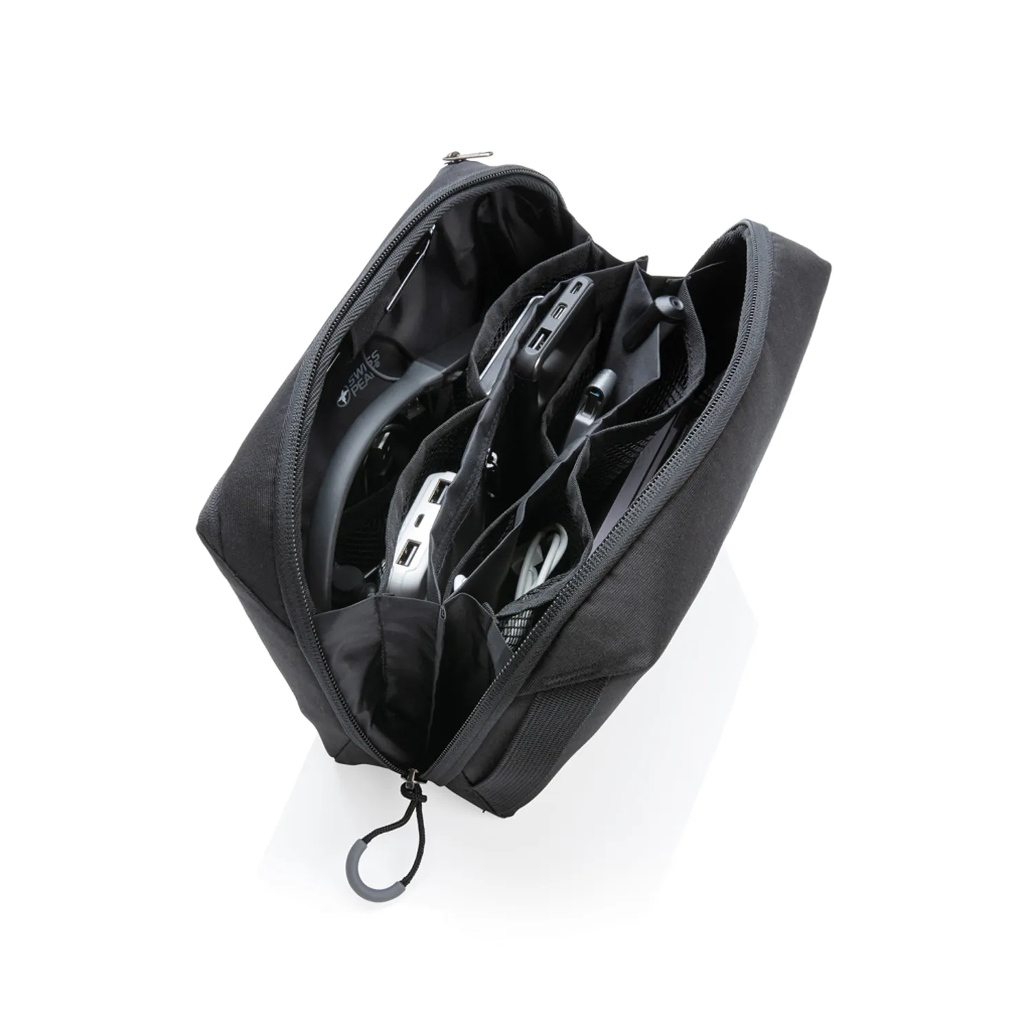 Простота, функциональность и стиль — это об органайзере от Swiss Peak, изготовленном из переработанных пластиковых бутылок. Кабели и провода, зарядки и флешки — он поможет хранить все необходимое в идеальном порядке. Внутри два вместительных отделения и множество кармашков, в которые можно поместить гораздо больше, чем может показаться на первый взгляд. Для более удобного доступа к проводам органайзер сделан в форме раскладушки: замок-молния позволяет раскрыть его на 180॰. Снаружи есть большой карман на молнии с отверстием для кабеля — в него можно поместить внешний аккумулятор для подзарядки телефона в дороге. Органайзер оснащен удобными для переноски ручками. Подобный аксессуар станет незаменимым спутником для IT-специалистов, а также тех, кто работает с техникой. Он пригодится в командировках, поездках и путешествиях и не займет много места в багаже. Благодаря переработанным материалам каждый органайзер экономит 5,1 литра воды и позволяет повторно использовать 8,5 пластиковых бутылок объемом 0,5 литра. Не содержит ПВХ. 2% с продажи каждой вещи, отмеченной сертификатом AWARE™, мы перечисляем в поддержку всемирной организации Water.org. Сертификат AWARE™ подтверждает подлинное использование переработанных материалов.