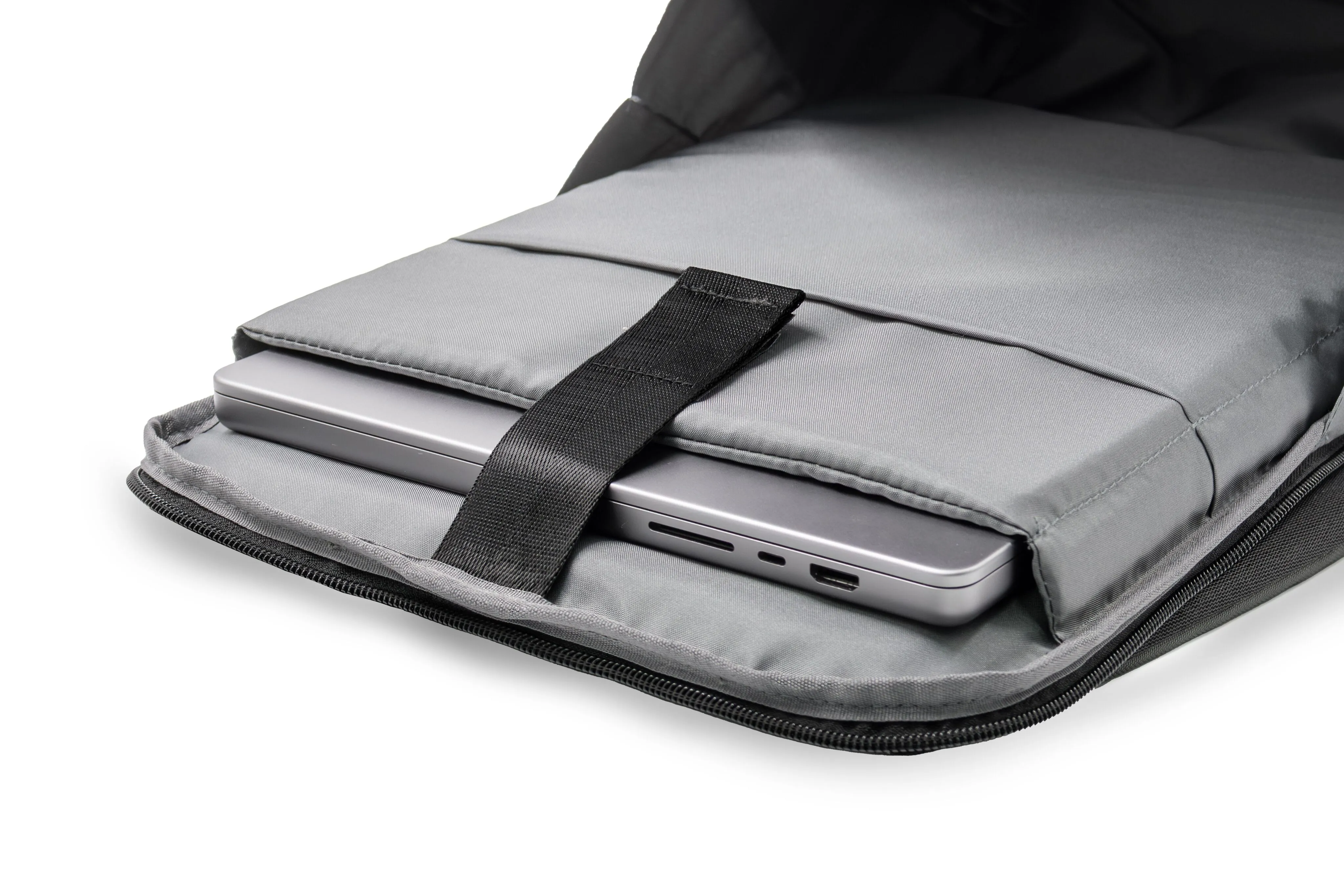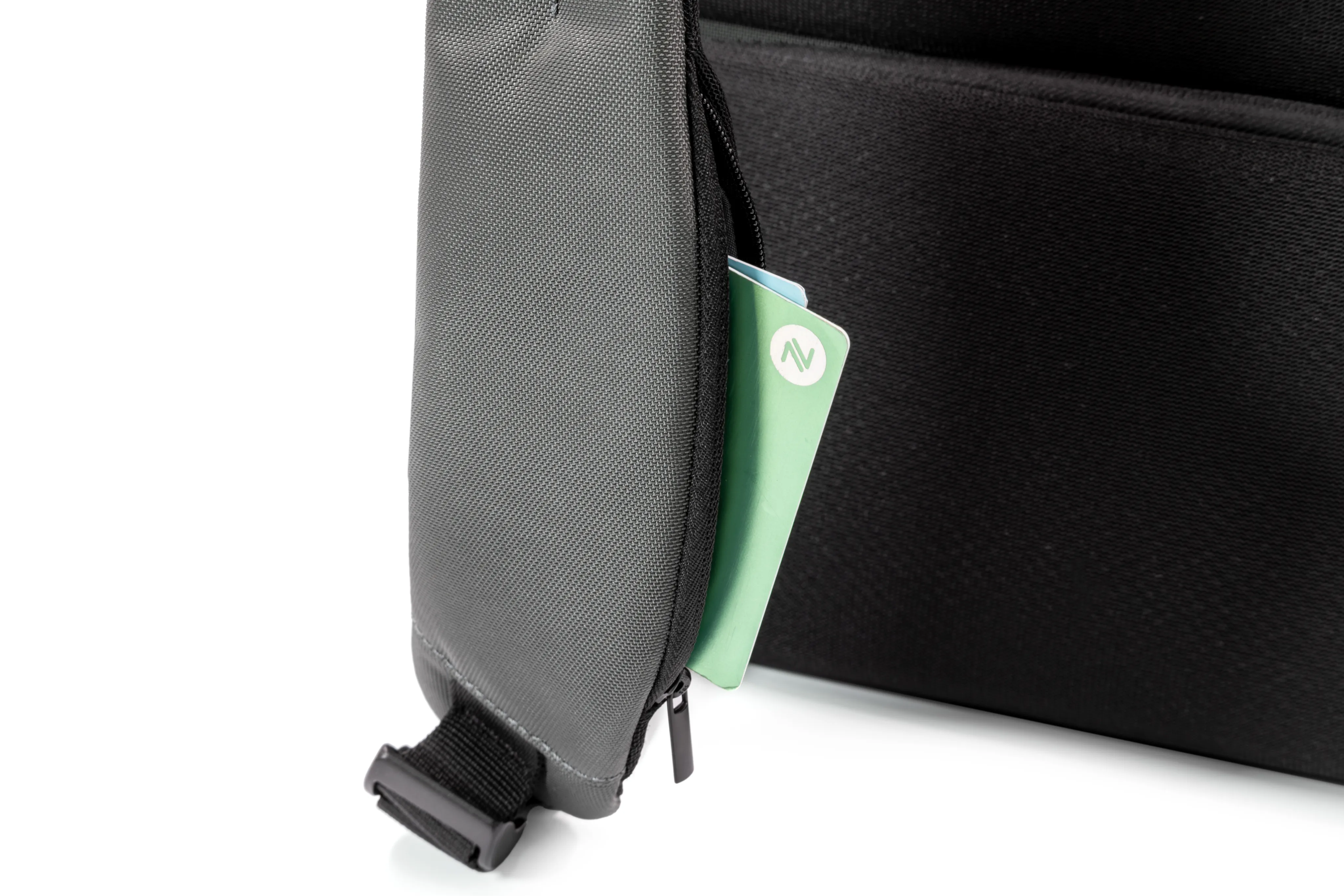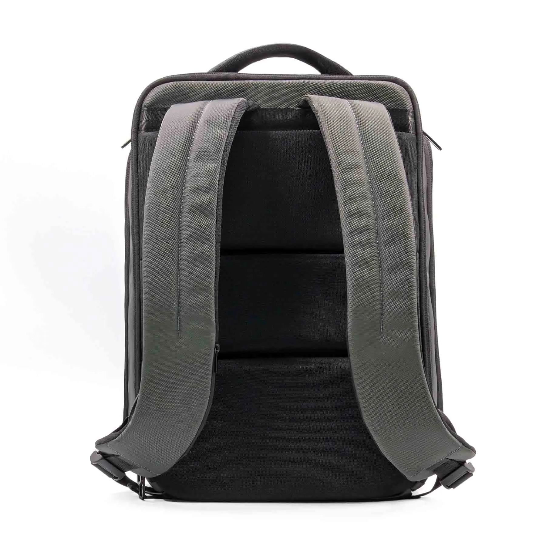 Экологичный рюкзак из баллистического полиэстера 800D с элементами из веганской кожи. Изготовлен из 7 переработанных ♻PET- бутылок (по 500 мл), сертифицирован по стандарту RCS (Recycled Claim Standard). Вместительное основное отделение с мягким отсеком защищает ноутбук до 16 диагонали, 7 функциональных отделений на молнии: отсек для очков с мягкой подкладкой, отсек для аксессуаров, карман для карт или ключей, скрытый антивор-карман на спинке, два боковых кармана для бутылки воды или зонта. Мягкие вентиляционные вставки на спинке и ремень для крепления на чемодан. Материал устойчив к влаге и загрязнениям. Объем 22 л.