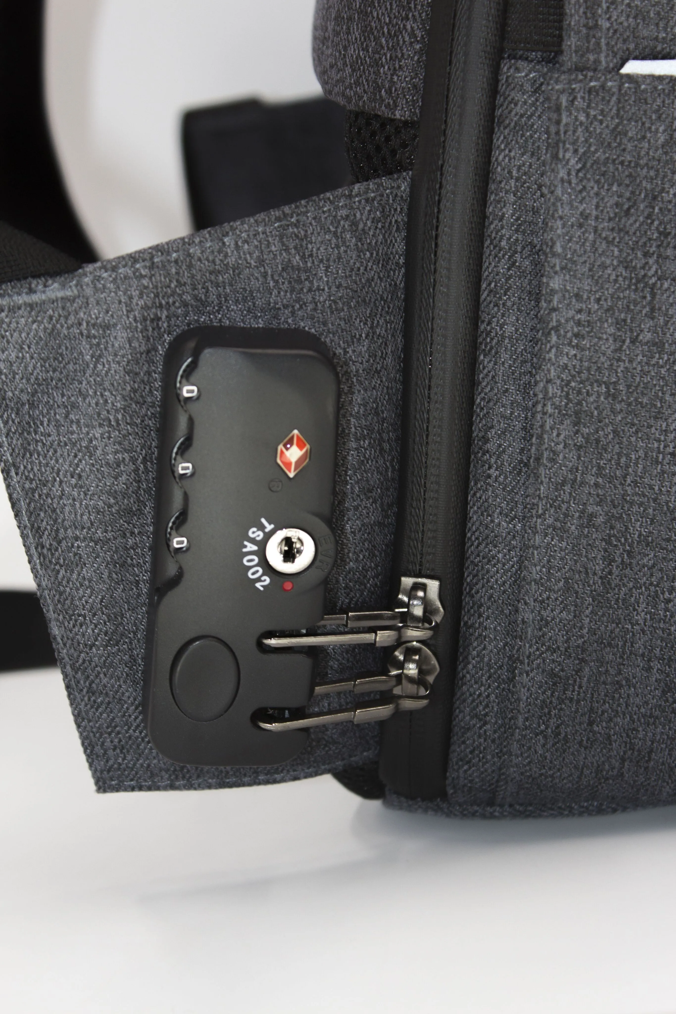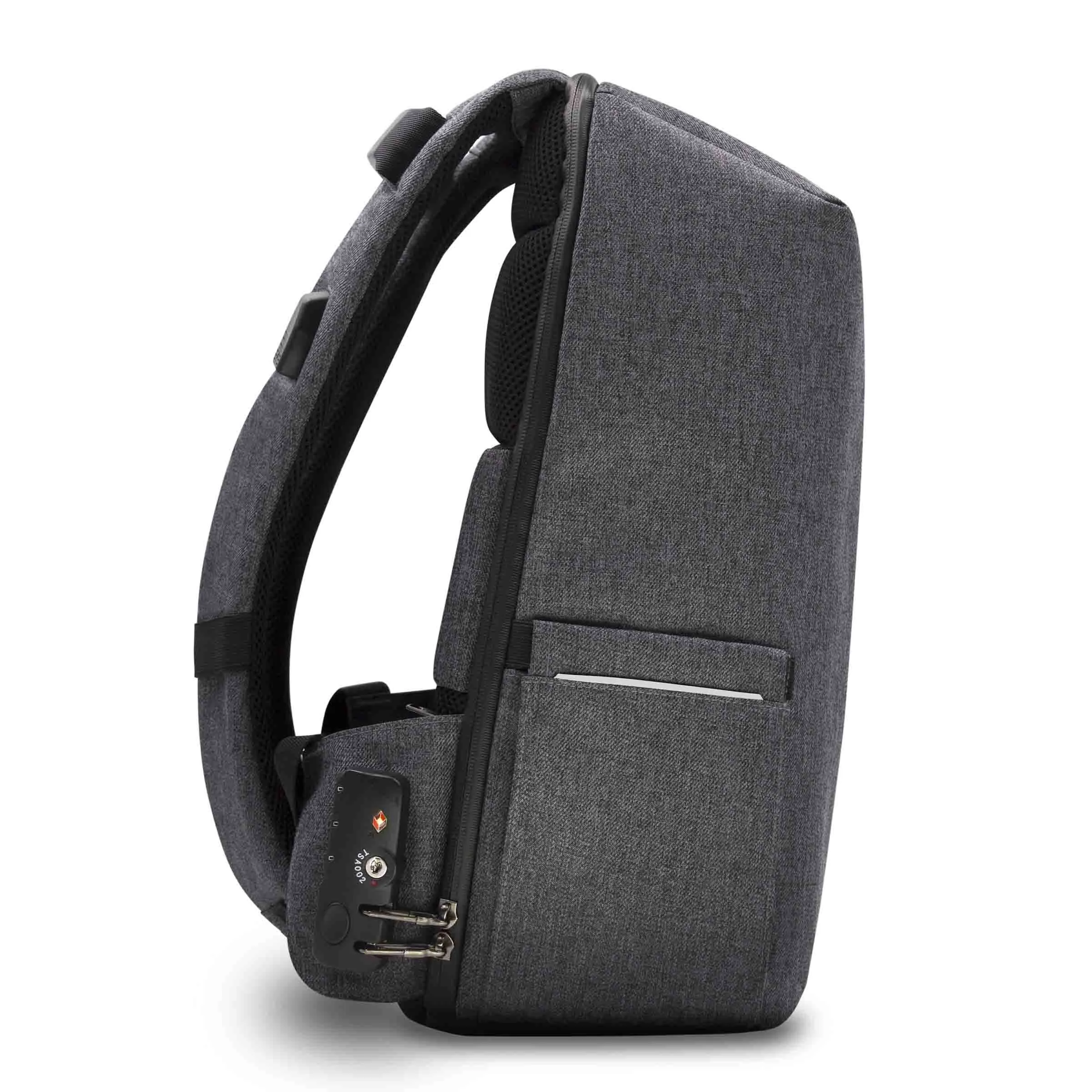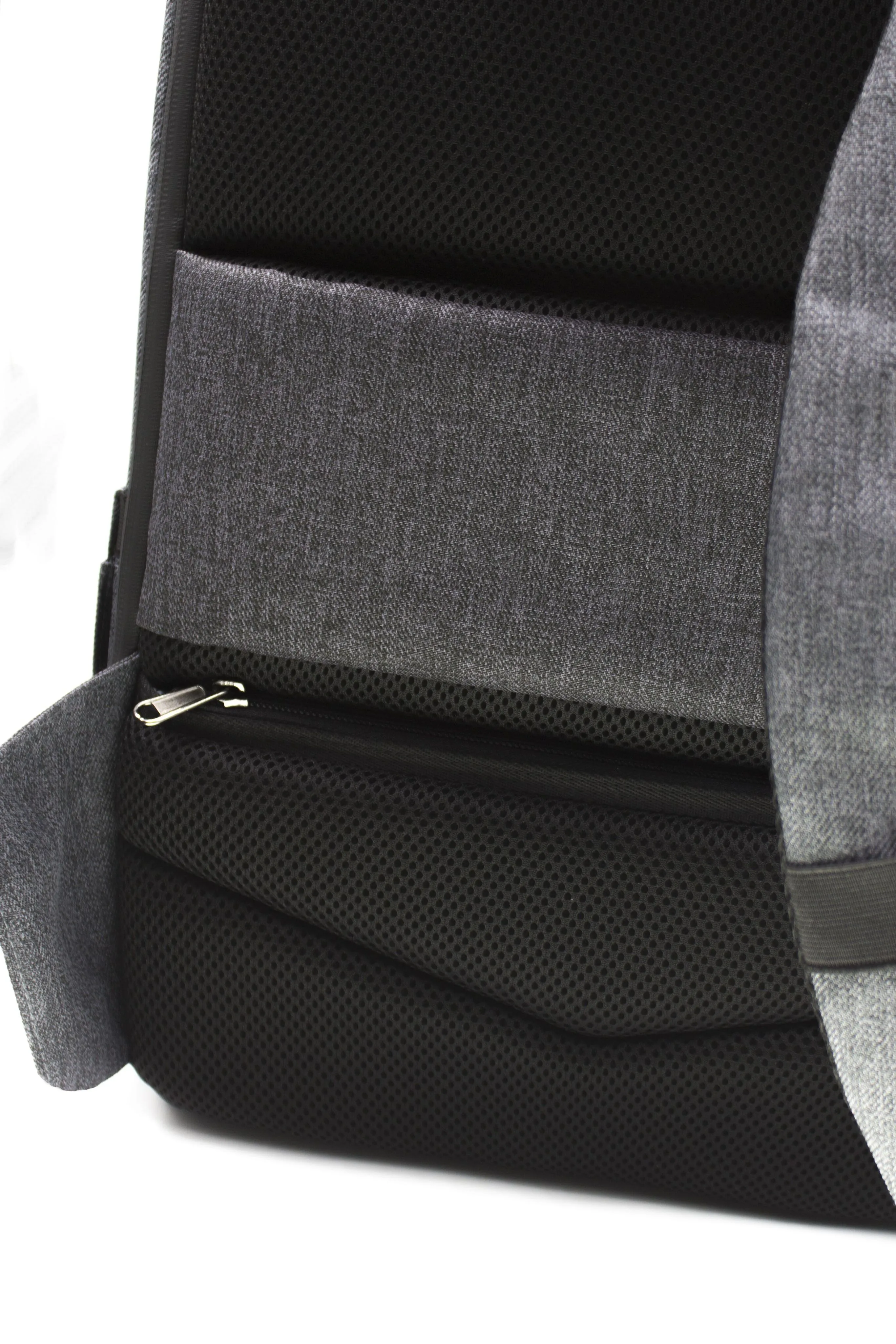 Рюкзак изготовлен из 15 переработанных ♻PET- бутылок (по 500 мл). Оснащён встроенным TSA-замком, скрытым отделенем для паспорта и ремешком, позволяющим пристегнуть рюкзак к любому предмету. Имеет порт USB для подзарядки устройств, отделение для ноутбука, удобный карман для карт, водонепроницаемую молнию, выдвижные боковые карманы, мягкую спинку с вентиляцией, анатомичными лямками и креплением на чемодан, водо- и грязеотталкивающее покрытие со светоотражающими элементами для безопасности в тёмное время суток. Пряжка оснащена встроенной открывалкой для бутылок. Металлическая бирка: эпоксидное покрытие, бирка из искусственной кожи.