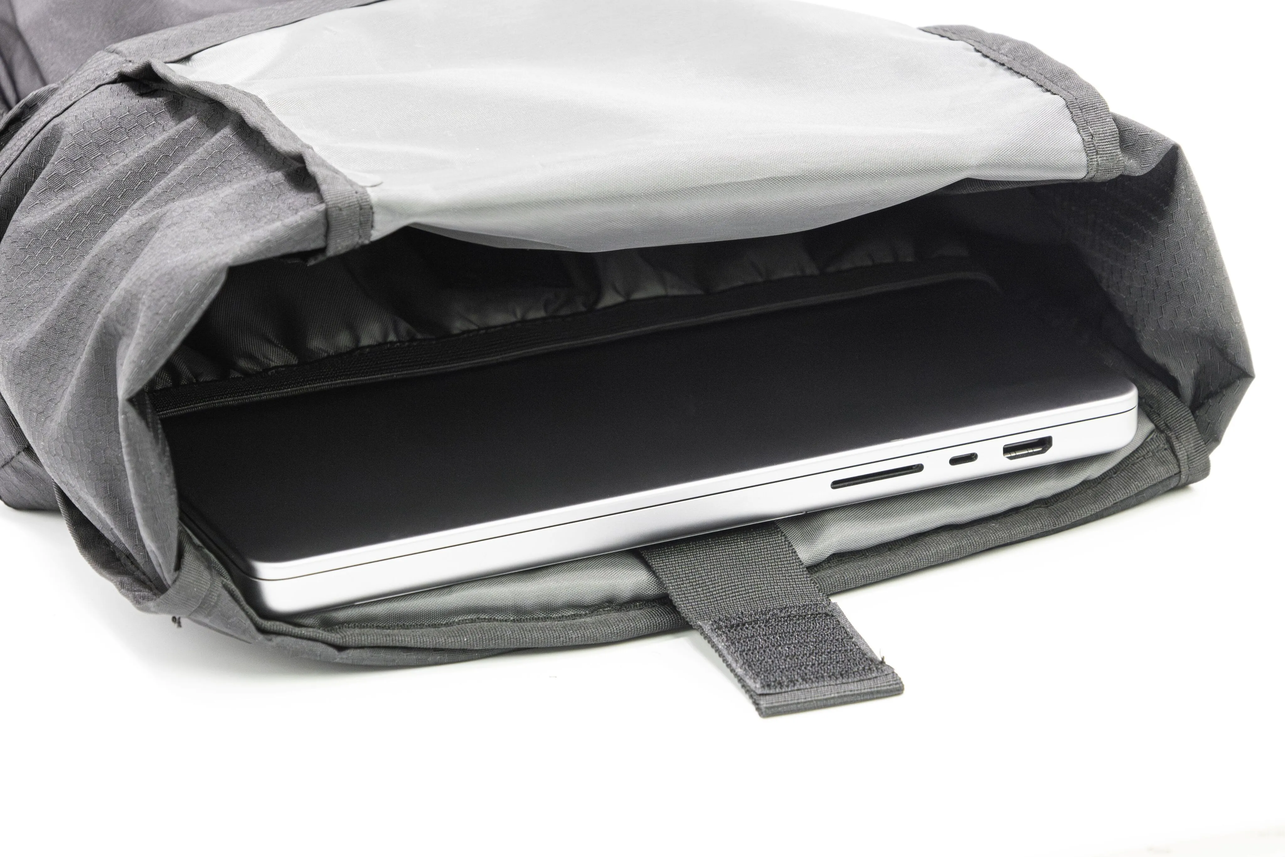 Универсальный городской рюкзак-мессенджер. Создан из 16 переработанных пластиковых бутылок по 500 мл (♻ rPET). Сертифицирован как экологичное решение по стандарту Recycled Claim Standard (RCS). Включает в себя: Отделение для ноутбука до 16 дюймов с мягкой вставкой и ролл-топ-систему для регулирования высоты. Светоотражающие шнуры для безопасности на дороге. Вентилируемые лямки и регулируемый вертикальный и горизонтальный нагрудный ремень с сигнальным свистком. Боковые и центральные карманы-стрейч для бутылки, зонта или йога-коврика. Водо- и пятноотталкивающая ткань. Сверхлёгкий и компактный — складывается по системе space saver roll, идеально для путешествий, города и повседневного использования. Вместимость 28 л.