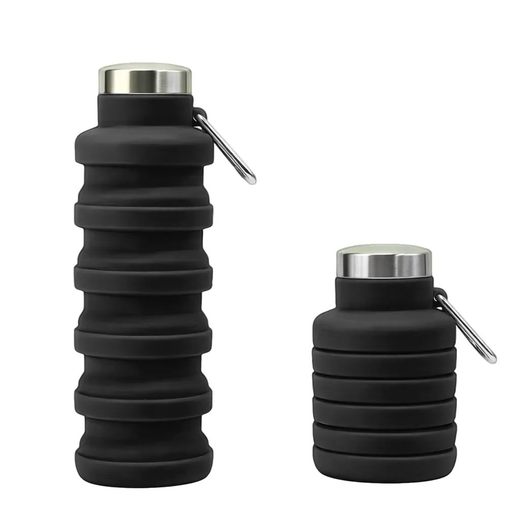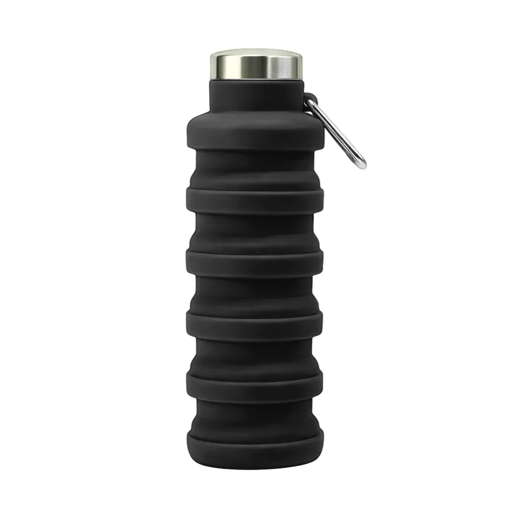 Компактная бутылка-трансформер с корпусом из силикона и крышкой из нержавеющей стали. Объём около 200 мл в сложенном виде и до 500 мл в разложенном (карабин не предназначен для альпинизм).