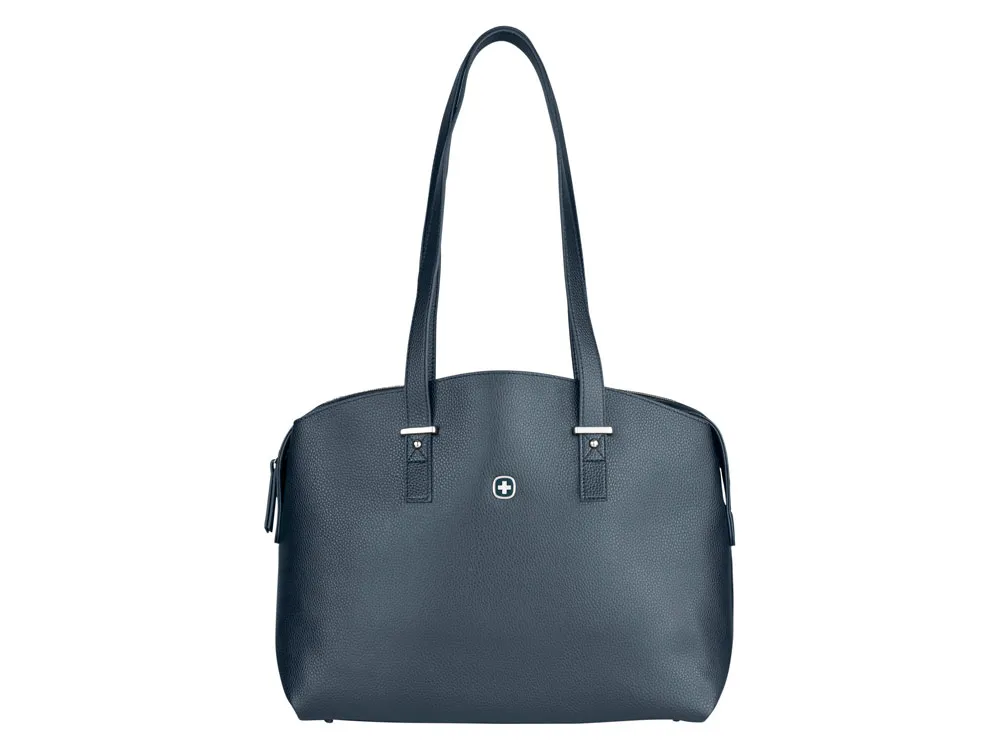 Изысканная и удобная сумка будет незаменимым помощником для деловой женщины в любой ситуации, будь это поездка на работу или на праздничный вечер. - Три отделения: мягкое отделение на молнии надежно защитит Ваш ноутбук диагональю до 14" - Внутренний карман на молнии надежно сохранит ценные вещи - Накладные карманы для облегчения доступа к телефонам и мелким предметам первой необходимости - Маленькие металлические ножки защищают дно сумки Изготовлена из мягкой, эластичной искусственной кожи с отделкой серебряного цвета, создающей легкую гламурную нотку.