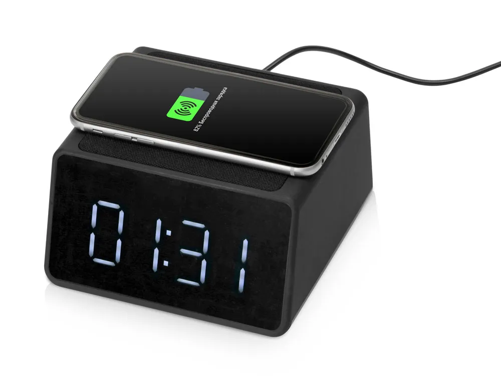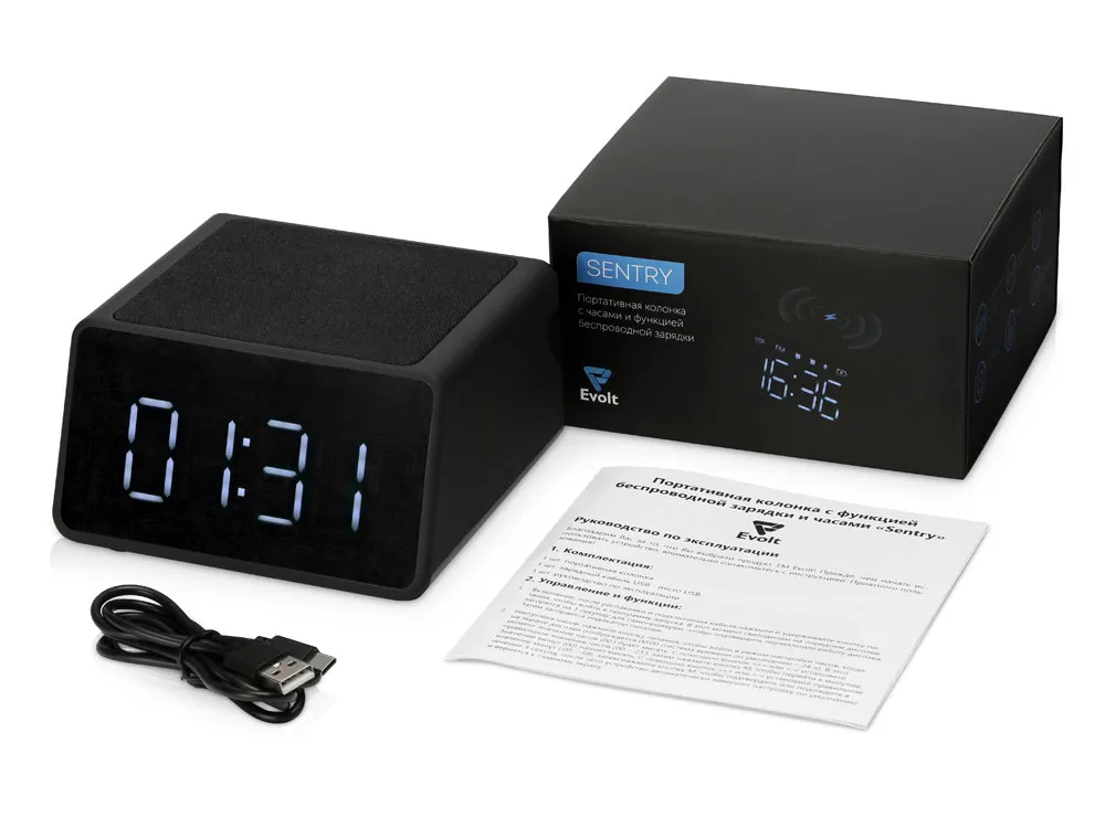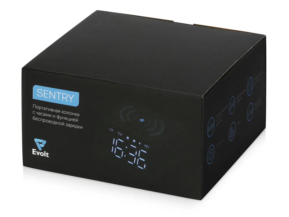 Беспроводная колонка с часами и функцией беспроводной зарядки «Sentry», черный (P)