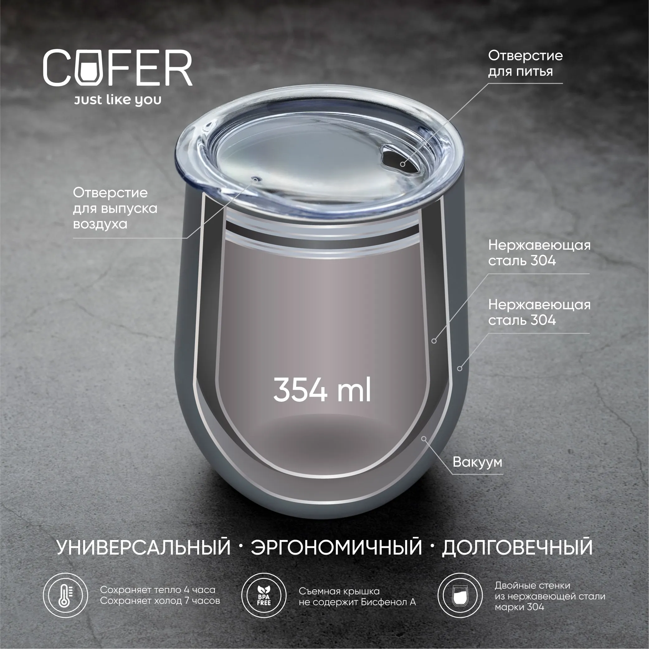 Кофер — это емкость для питья нестандартной формы, которая сохраняет холод и тепло за счет двойных стенок из пищевой стали и вакуума между ними.