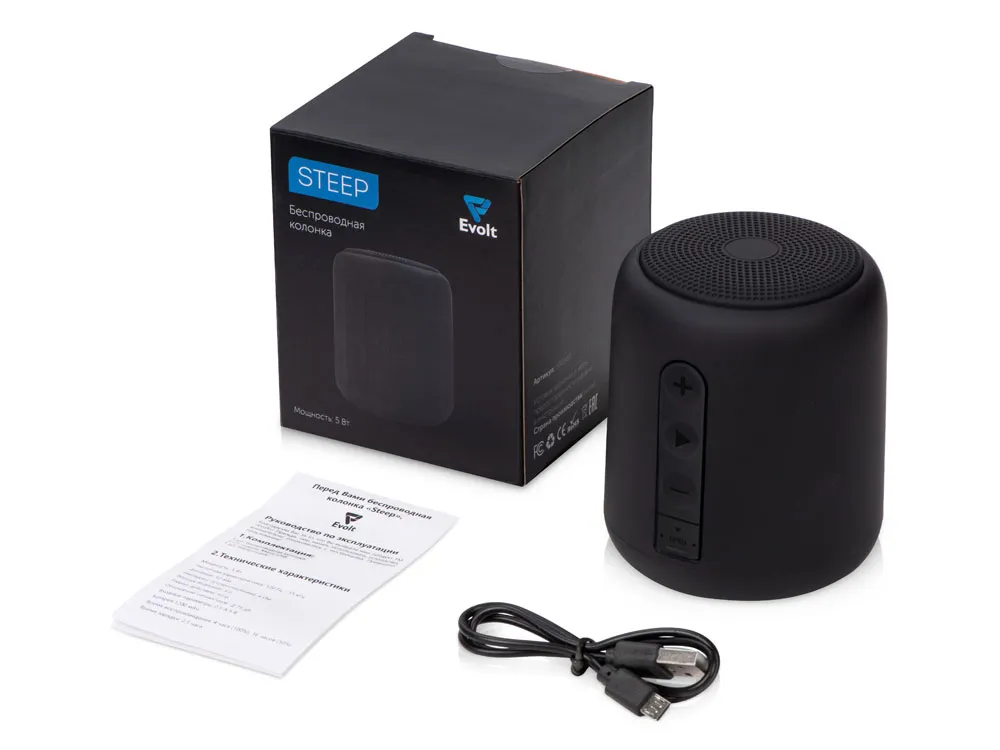 Steep от Evolt — портативная колонка с хорошими басами, качественным звучанием и внутренним аккумулятором, обеспечивающим длительное время работы без проводов и подзарядки. Опция TWS позволит объединить колонки в пару и наслаждаться звуком, окружающим вас с двух сторон. - TWS - soft-touch корпус - сабвуфер, мощный бас - мощность 5 Вт