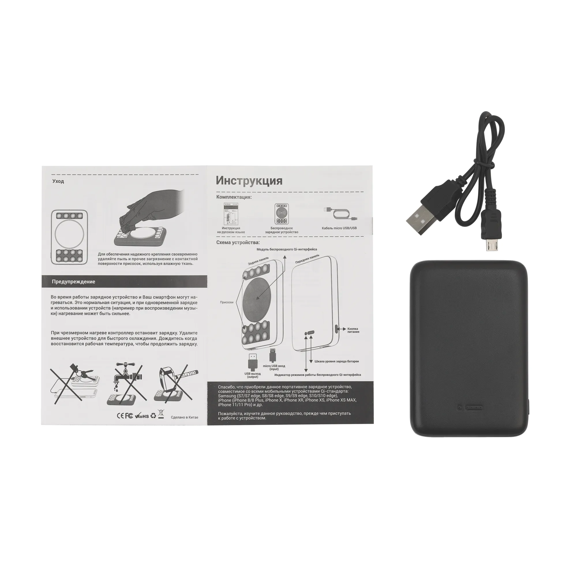 Аккумулятор подходит для мобильных устройств Qi (Ци) стандарта. Данная технология является универсальной, её используют производители смартфонов, работающих на платформе android и iOS. В характеристиках смартфона должна быть обозначена поддержка беспроводной зарядки.Также мобильные устройства можно зарядить проводным способом при помощи входящего в комплект кабеля.