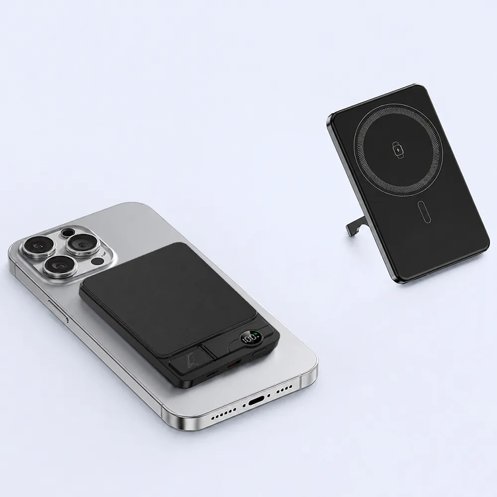 Стильный и функциональный Superb сочетает в себе современные технологии зарядки и продуманную эргономику. Лаконичный дизайн и компактный корпус делают его идеальным аксессуаром для повседневного использования и деловых поездок. Модель оснащена встроенной подставкой, которая позволяет удобно фиксировать смартфон в вертикальном или горизонтальном положении. Это особенно удобно для видеозвонков, просмотра контента или работы во время зарядки — без лишних усилий и аксессуаров. Поддержка беспроводной зарядки мощностью до 15W позволяет заряжать совместимые устройства без лишних проводов — достаточно просто приложить смартфон c поддержкой технологии Qi. Для максимальной универсальности предусмотрены разъёмы Type-C и Lightning, обеспечивающие быструю и стабильную проводную зарядку. Характеристики: Ёмкость: 5000 мАч Беспроводная зарядка: 15W Удобная подставка