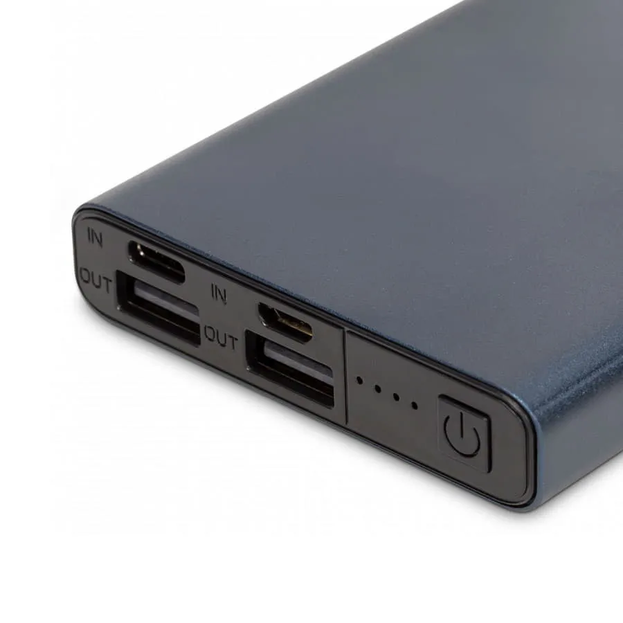 Емкость батареи - 10 000 мАчБыстрая зарядка - НетМатериал корпуса - Алюминиевый сплавЦвет корпуса - СинийВходные порты - Micro-USB; Type-CВыходные порты - 2 × USBВходное напряжение ток - Type-C: 5 В 2 АВыходное напряжение ток - 5 В 2.1 АВремя зарядки - 5 – 6 часовРазмер устройства - 131.2 х 66 х 14.6 ммВес устройства - 215 г