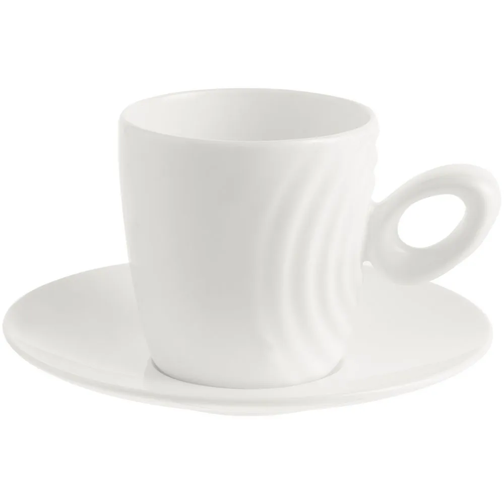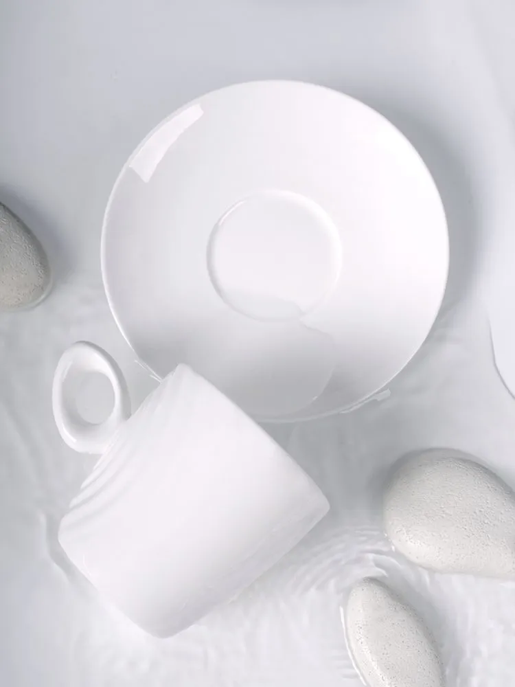 Форма сервиза создана в скульптурной технике: фарфор словно запечатлел сам момент движения. Необычная ручка предметов символизирует камень, от которого появляются завораживающие круги на воде — корпусе изделия.